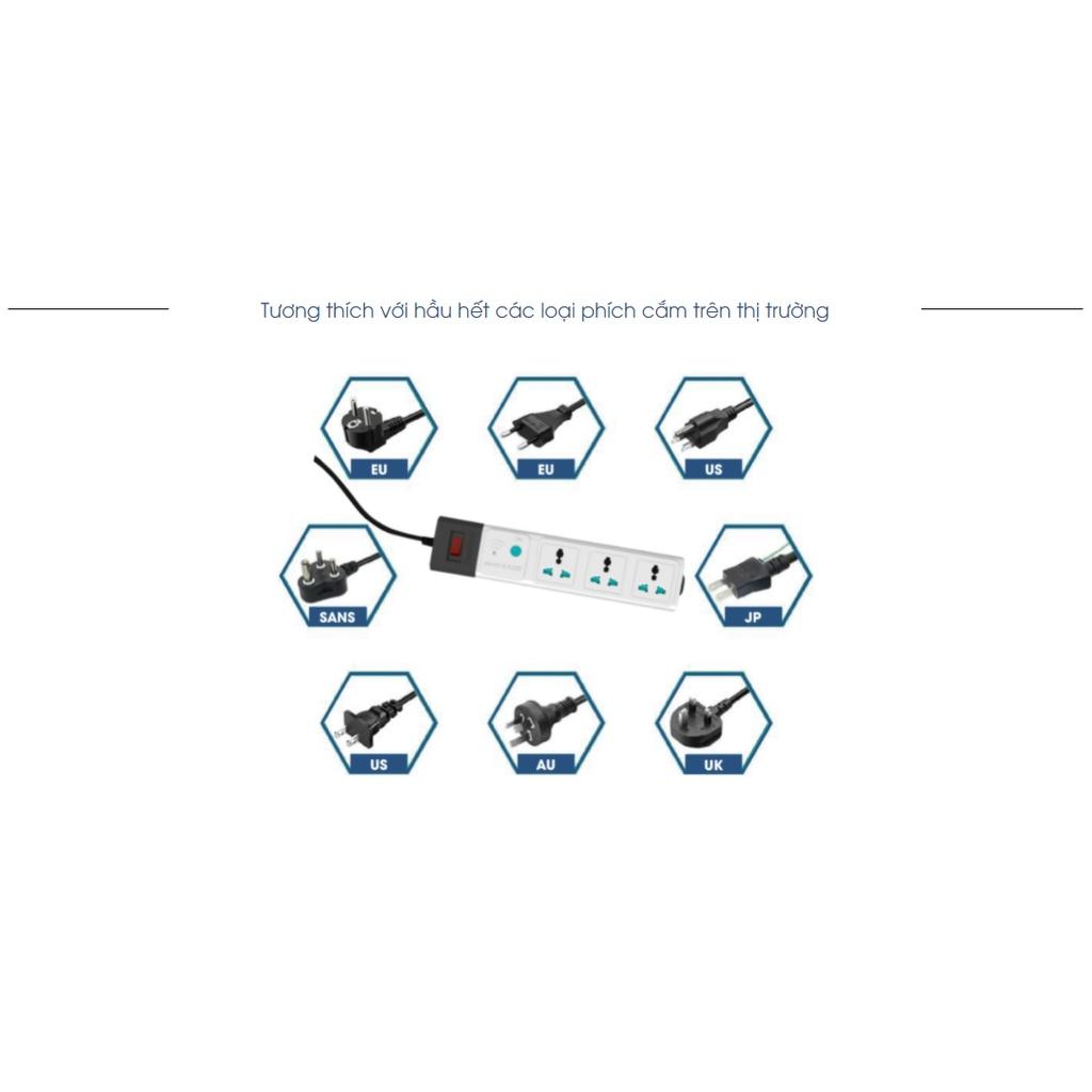 * Đặc tính sản phẩm Chiều dài dây: 3m Kích thước (DxRxC): (270x60x35) mm Khối lượng: 0.4 kg *Thông số điện Điện áp hoạt động tối đa: 250V Dòng điện ổ cắm tối đa: