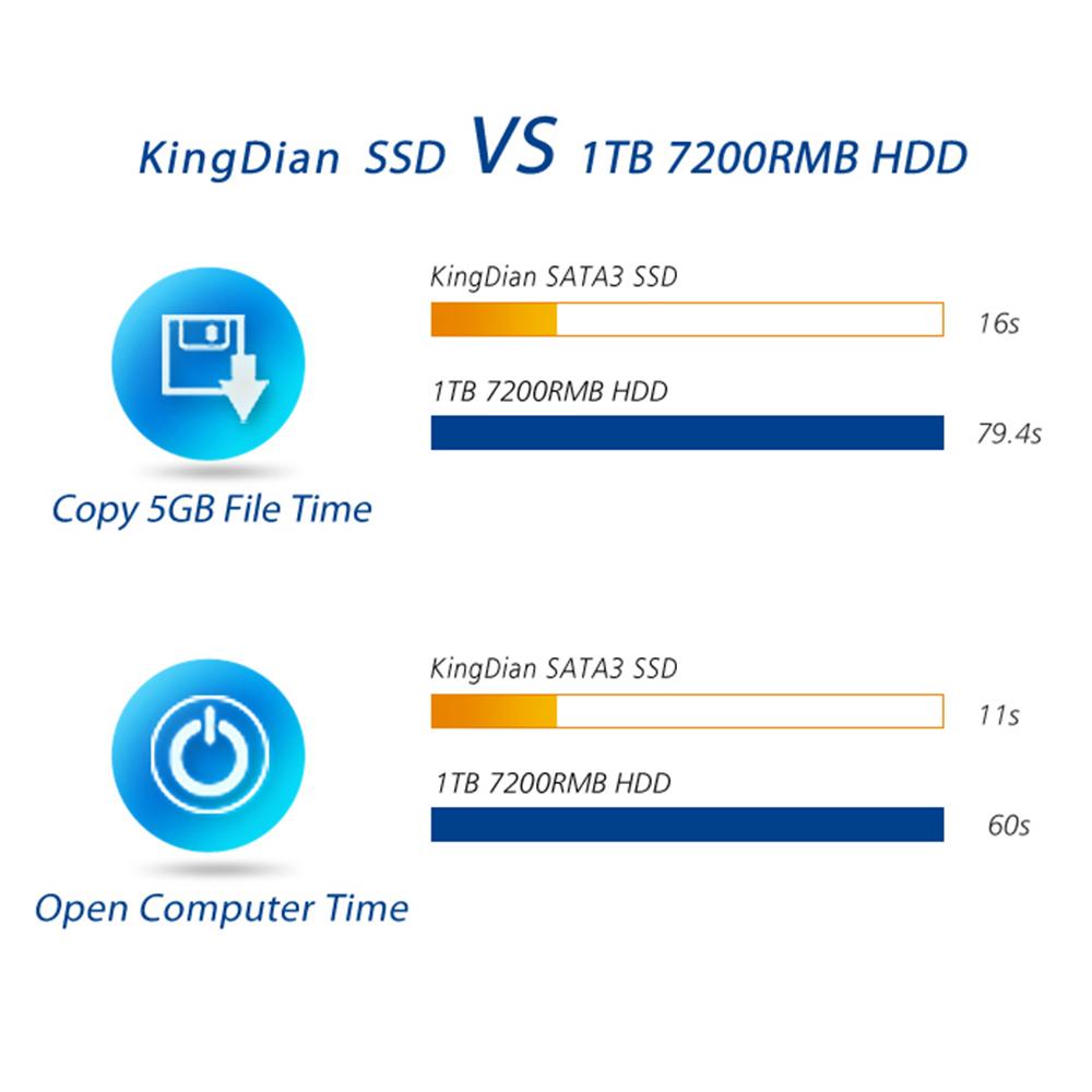 Our KingDian SSD is in solid-state construction and highly reliable, allowing you to enjoy the benefits of sustained maintenance-free performance without fear of mechanical failures. Features: Boost your data transfer speeds with KingDian rapid ssd.