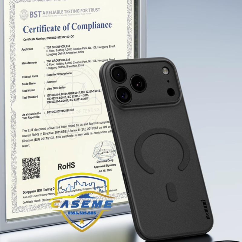 Mua tại TiktokỐp lưng iPhone Air, iPhone 17, iPhone 17 Pro, iPhone 17 Pro Max Memumi Slim Case Magnetic – siêu mỏng, sang trọng và tiện lợi Bạn cần một chiếc ốp lưng vừa bảo vệ điện thoại, vừa giữ nguyên vẻ đẹp sang trọng? Memumi Slim Case Magnetic chính là lựa chọn lý tưởng. Thiết kế siêu mỏng, tích hợp sạc không dây từ tính và bảo vệ hiệu quả. Thiết kế siêu mỏng – Trải nghiệm “dùng như không dùng” Memumi nổi bật với độ mỏng chỉ 0.33mm. Người dùng gần như không cảm nhận được sự hiện diện của ốp. Điện thoại vẫn giữ nguyên dáng mỏng nhẹ, dễ bỏ vào túi quần hoặc túi xách. Bề mặt nhám mịn, hạn chế trơn trượt và tạo cảm giác cầm nắm thoải mái. Tích hợp sạc không dây từ tính – Sạc nhanh, kết nối tiện lợi Điểm khác biệt lớn nhất là hỗ trợ sạc không dây từ tính. Vòng nam châm mạnh giúp iPhone kết nối chắc chắn với sạc và phụ kiện. Chỉ cần đặt lên đế sạc, máy tự căn chỉnh vị trí chính xác. Sạc nhanh, ổn định và tiện lợi hơn hẳn so với ốp thường. Bảo vệ cơ bản nhưng hiệu quả Dù mỏng nhẹ, Memumi Slim Case Magnetic vẫn bảo vệ tốt cho iPhone. Chất liệu PP/PC cao cấp chống trầy xước, chống bám vân tay và mồ hôi. Viền nhô cao quanh cụm camera và màn hình hạn chế trầy xước khi đặt trên bề mặt phẳng. So sánh với ốp thường