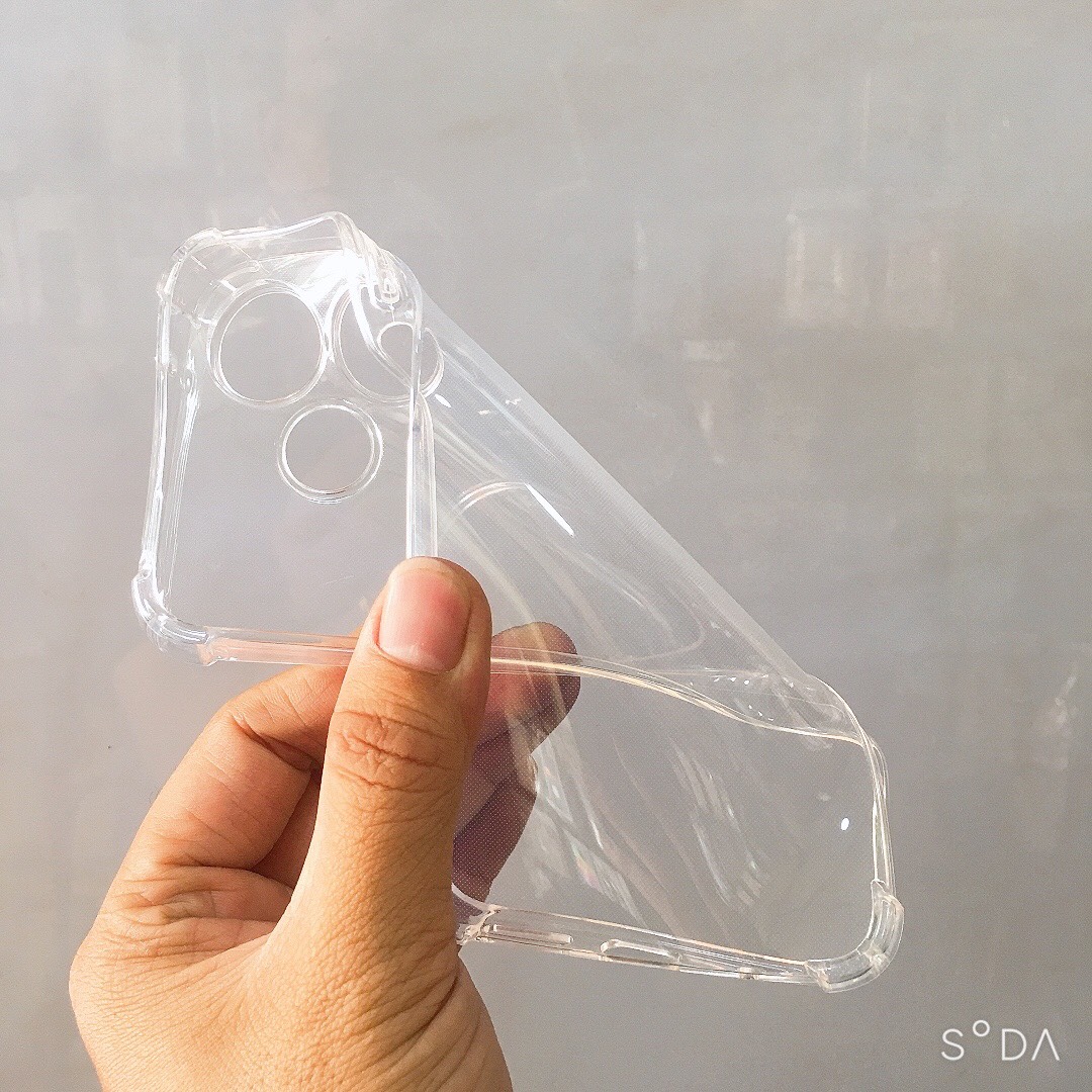 Chất liệu TPU dày 0.9 mm, mềm dẻo, trong suốt, có độ đàn hồi cao, có thể bóp lại, cuộn lại mà không biến dạng. Chất liệu dày dặn hơn ốp dẻo trong suốt thường, 4 góc được làm dày hơn để chống sốc cho máy (khi rơi thường vào vị trí 4 góc), các gai chống sốc nằm phía trong ốp lưng, phần tiếp xúc với máy, giúp chống sốc khi rơi rớt, nên khi cầm tay không bị gợn