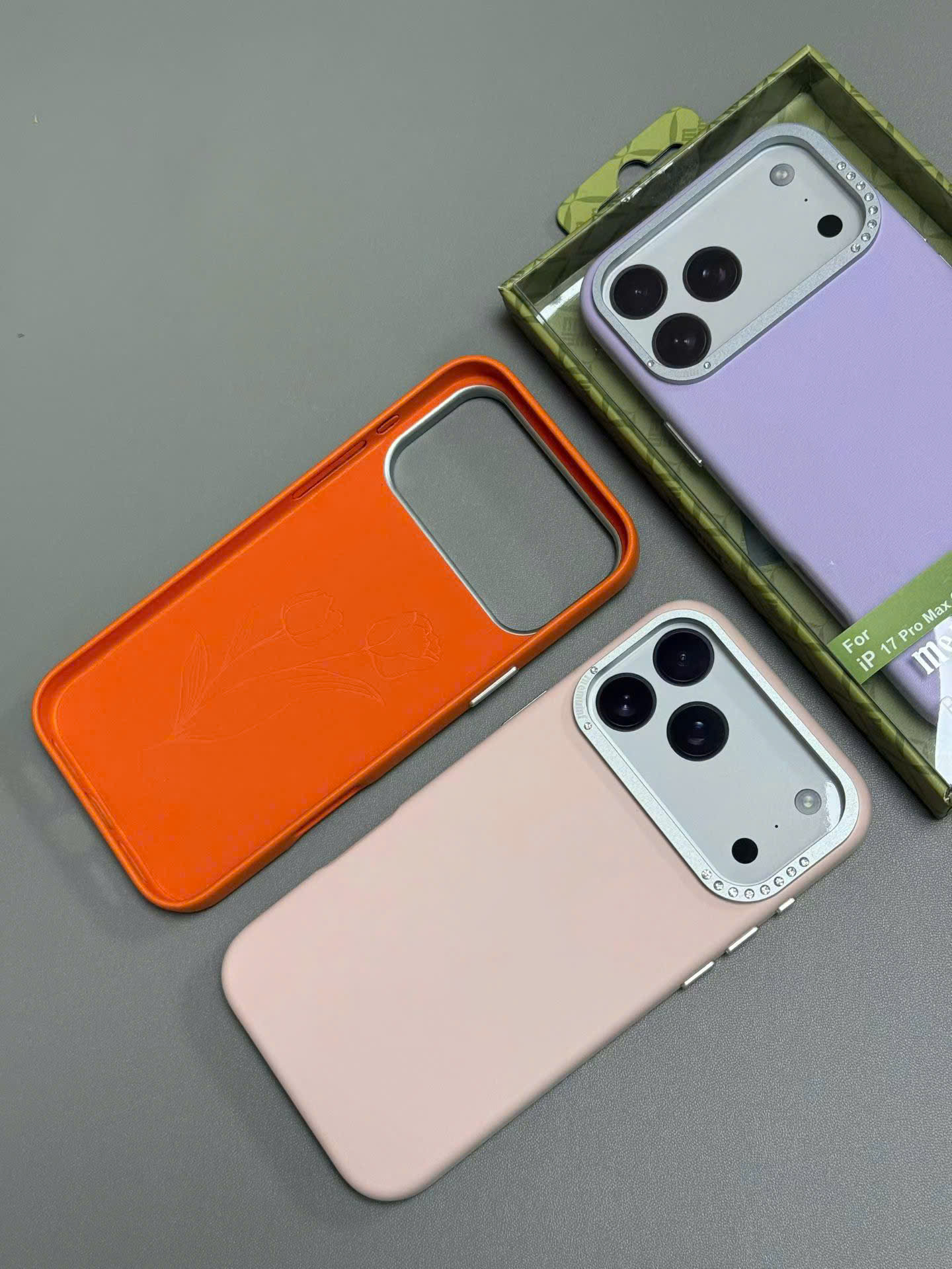 Ốp lưng da PU viền cam đá cho iPhone 17 Pro Max hiệu Memumi Diamond With Mag safe • Chất liệu da PU cao cấp, mềm mại và sang trọng khi cầm nắm. • Vòng