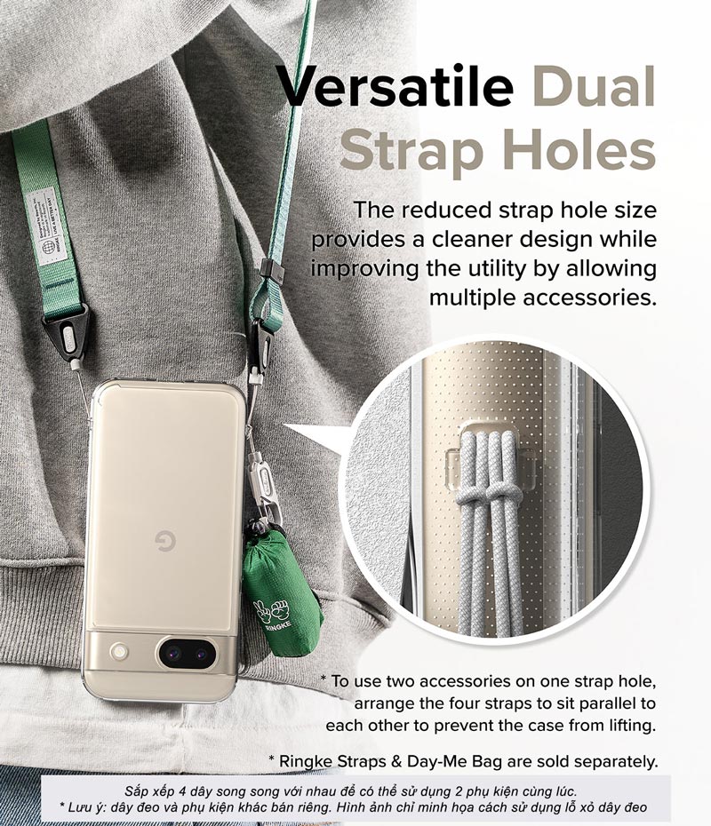 - Kích thước lỗ xỏ dây đeo cải tiến cho phép treo (móc) được 2 phụ kiện cùng lúc. Lưu ý: dây đeo được bán riêng. Hình ảnh chỉ minh họa cách sử dụng sản phẩm.