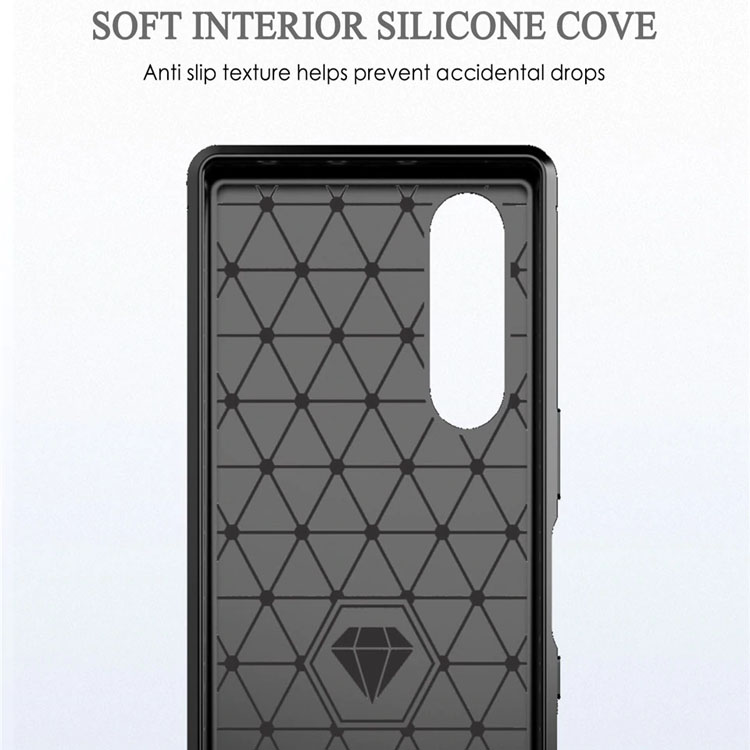 Ốp lưng chống sốc Sony Xperia 5 Vân Sợi Carbon được thiết kế với 2 dải carbon trên dưới tuyệt đẹp, độc đáo, sang trọng Ốp lưng được làm từ chất liệu nhựa mềm TPU