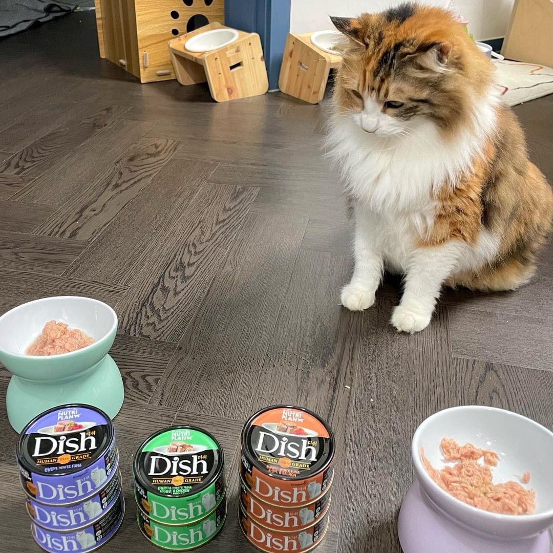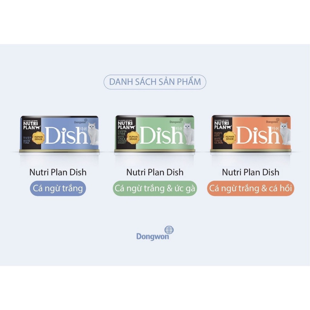 85gr - Pate Dongwon Dish cho Mèo lớn Mèo con thịt nguyên miếng thơm ngon nhập Hàn Quốc thành phần Cá Gà Sản xuất tại: Dongwon, 68 Mabang-ro, Seocho-gu, Seoul, Hàn Quốc Quy cách: 85g Pate cho mèo Dish là loại thức ăn dành riêng cho mèo, được sử dụng thành phần chính là cá & gà. Đây là loại thức ăn giàu protein, Taurine, axit amin và các khoáng chất khác rất tốt cho mèo. Đặc điểm sản phẩm Nguyên liệu chủ yếu là cá ngừ cá trắng thịt gà tươi ngon, tốt cho sức khỏe. Bổ sung các Axit amin cần thiết cho mèo như Taurine và Arginine. Bổ sung Probiotics (các vi khuẩn có lợi), hỗ trợ hệ tiêu hóa, nhuận tràng. Không sử dụng chất bảo quản, chất tạo vị, chất tạo đông. Thành phần dinh dưỡng Protein ≥ 11,8% Tro ≤ 1,3% Chất béo ≥ 0,15% Độ ẩm ≤ 98% Chất xơ thô ≤ 0,3% Các hương vị hiện có: 1. Dish White Tuna: vị Cá ngừ trắng Nguyên liệu: Cá ngừ vằn (thịt trắng), nước, nước cốt gà cô đặc, axit amin, chiết xuất cá minh thái khô, Probiotics. 2. Dish White Tuna & Salmon: vị Cá ngừ trắng & Cá hồi Nguyên liệu: Cá ngừ vằn (thịt trắng), nước, cá hồi, nước cốt gà cô đặc, axit amin, chiết xuất cá minh thái khô, Probiotics. 3. Dish White Tuna & Chicken: Cá ngừ trắng & Thịt gà Nguyên liệu: Cá ngừ vằn (thịt trắng), nước, ức gà, nước cốt gà cô đặc, axit amin, chiết xuất cá minh thái khô, Probiotics.