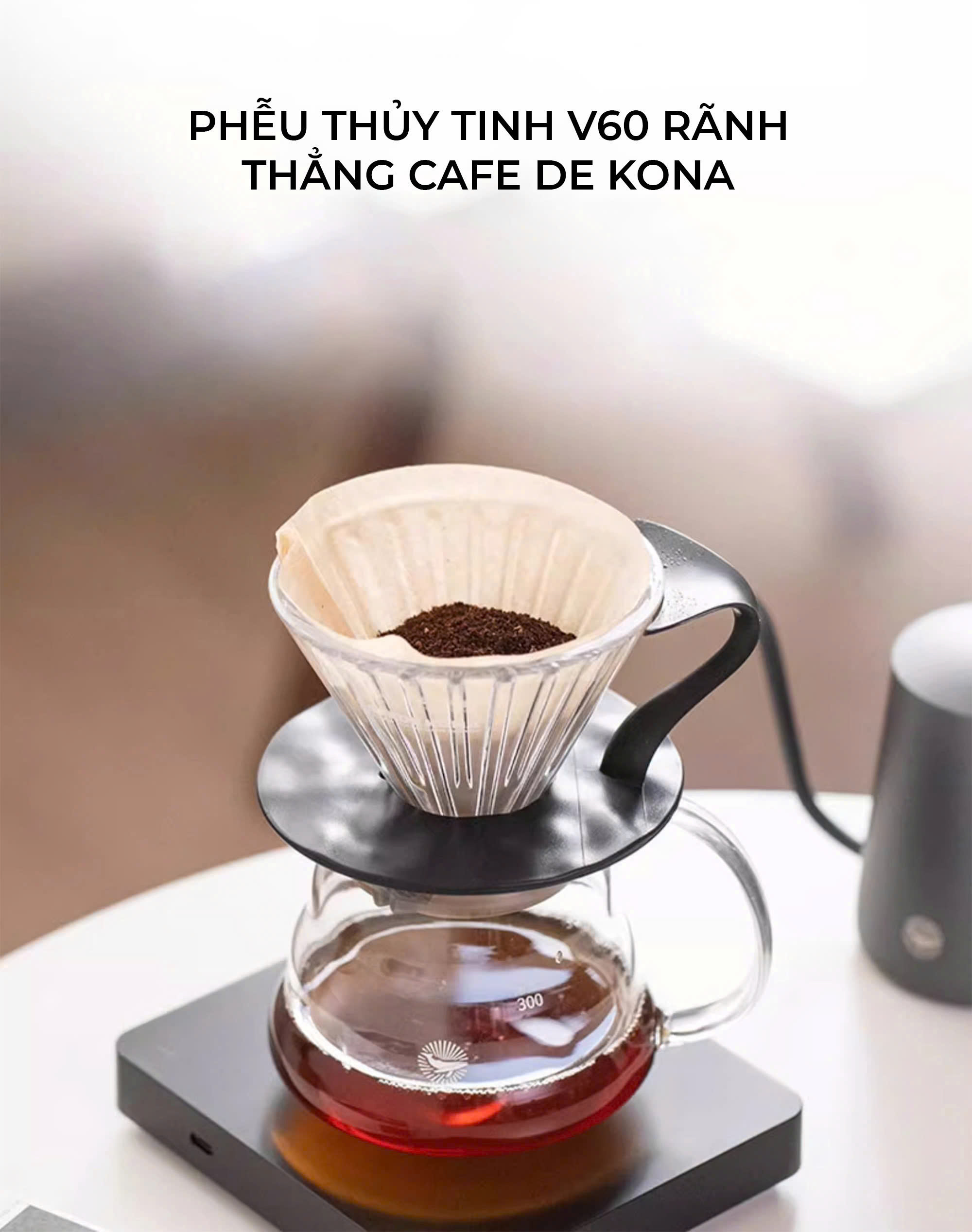 PHỄU LỌC CÀ PHÊ V60 THỦY TINH - ĐẾ CÓ THỂ THÁO RỜI_CAFE DE KONA