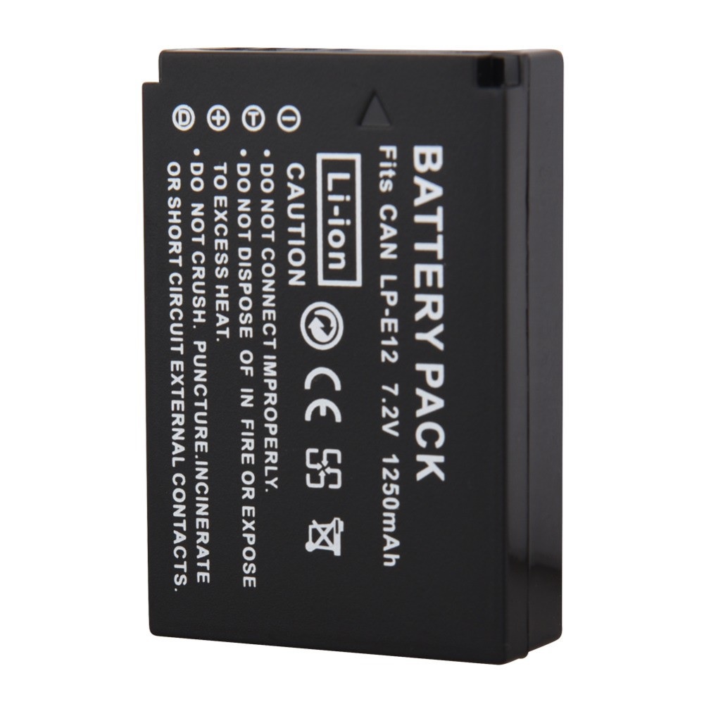 - an toàn và đáng tin cậy, hoàn hảo cho sử dụng đi du lịch và các hoạt động ngoài trời đặc điểm kỹ thuật: Loại pin: Li-Ion tương thích Với: Cho Canon EOS 100D Hôn X7 Rebel SL1 EOS M10 DSLR Battery mô hình: LP-E12 điện áp: 7.2 V công suất: 1250 mAh gói Bao Gồm: 1 x LP-E12 pin
