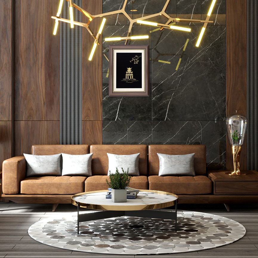 Tranh tháp Rùa hồ Gươm mạ vàng 24k - TR13