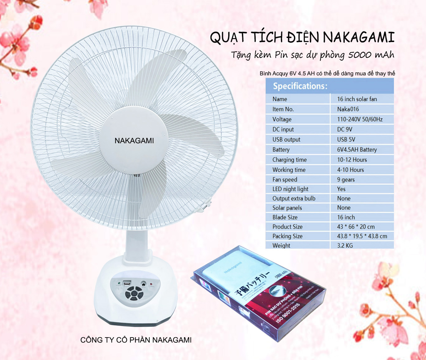 *** Tặng kèm pin sạc dự phòng Nakagami 5000 mAh khi mua quạt Quạt sạc tích điện Nakagami chất lượng công nghệ Nhật Bản - Có thể sử dụng 2 chế độ AC (điện 220v)