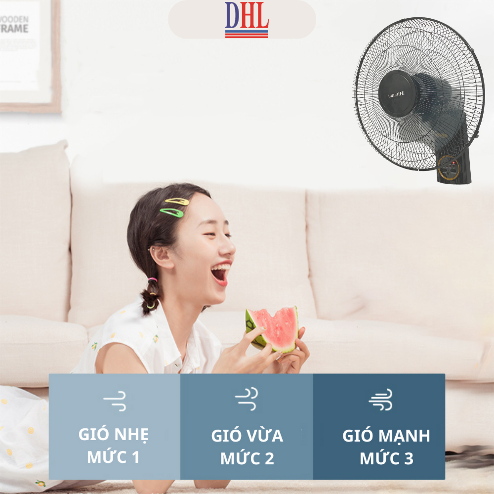 - Quạt treo tường, màu sắc hiện đại, sang đẹp, hài hòa cho không gian sống như: gia đình hoặc các khu vực phòng, sảnh công cộng… - 3 cánh quạt với đường kính cánh quạt