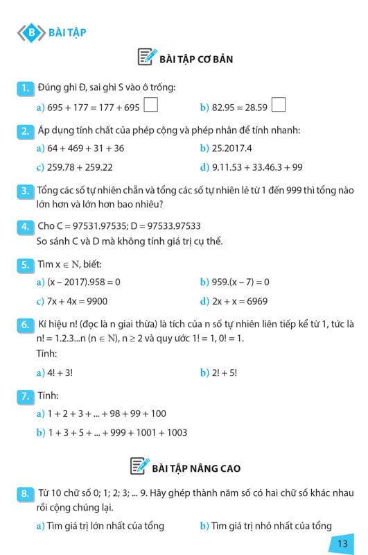 II. Bài tập nâng cao: Phát huy tính sáng tạo và tư duy học toán.