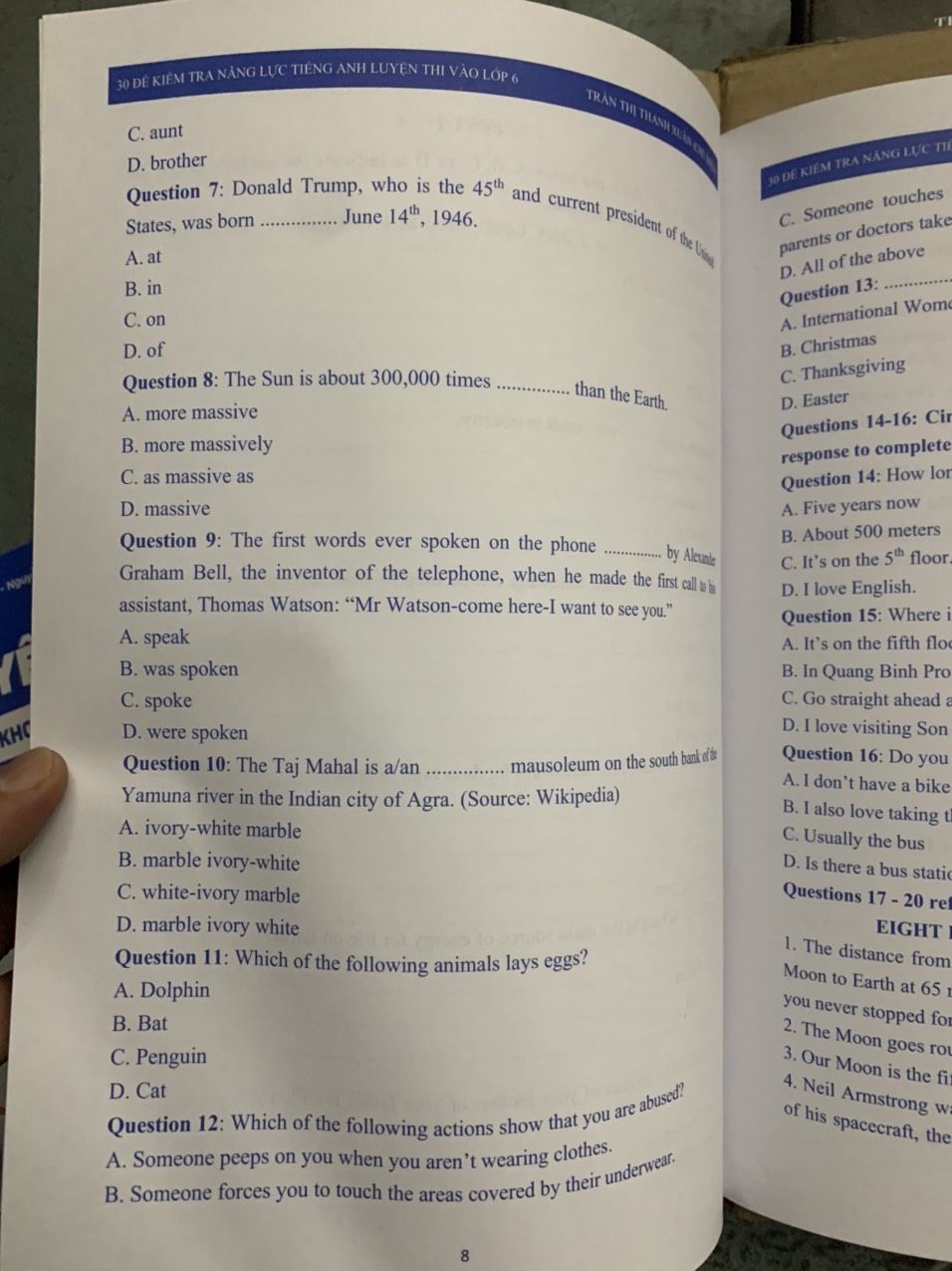Mua tại TiktokNội dùng gồm có: Sách gồm 30 đề thi thử môn tiếng Anh, mỗi đề gồm 25 câu hỏi với các kiểu bài phong phú và đa dạng kiểm tra kiến thức về ngữ âm, từ vựng, ngữ pháp và bắt đầu làm quen với các bài tập viết ngắn. Phần cuối phần cuối cuốn sách này đã bán cho các đề thi Contents Test 1 Test 2 Test 3 Test 4 Test 5 Test 30 Answer keys Tác giả: Trần Thị Thanh Xuân, Phí Thị Hương Giang, Nguyễn Thu Trang, Nguyễn Thanh Vân, Hà Thu ngân, Trần Thị Oanh, Ts. Kasey Hames ( Hiệu đính ) Số trang: 219 Xuất bản: 2020 Nhà xuất bản: Đại học quốc gia Hà Nội Công ty phát hành: Nxb Đại học quốc gia Hà Nội