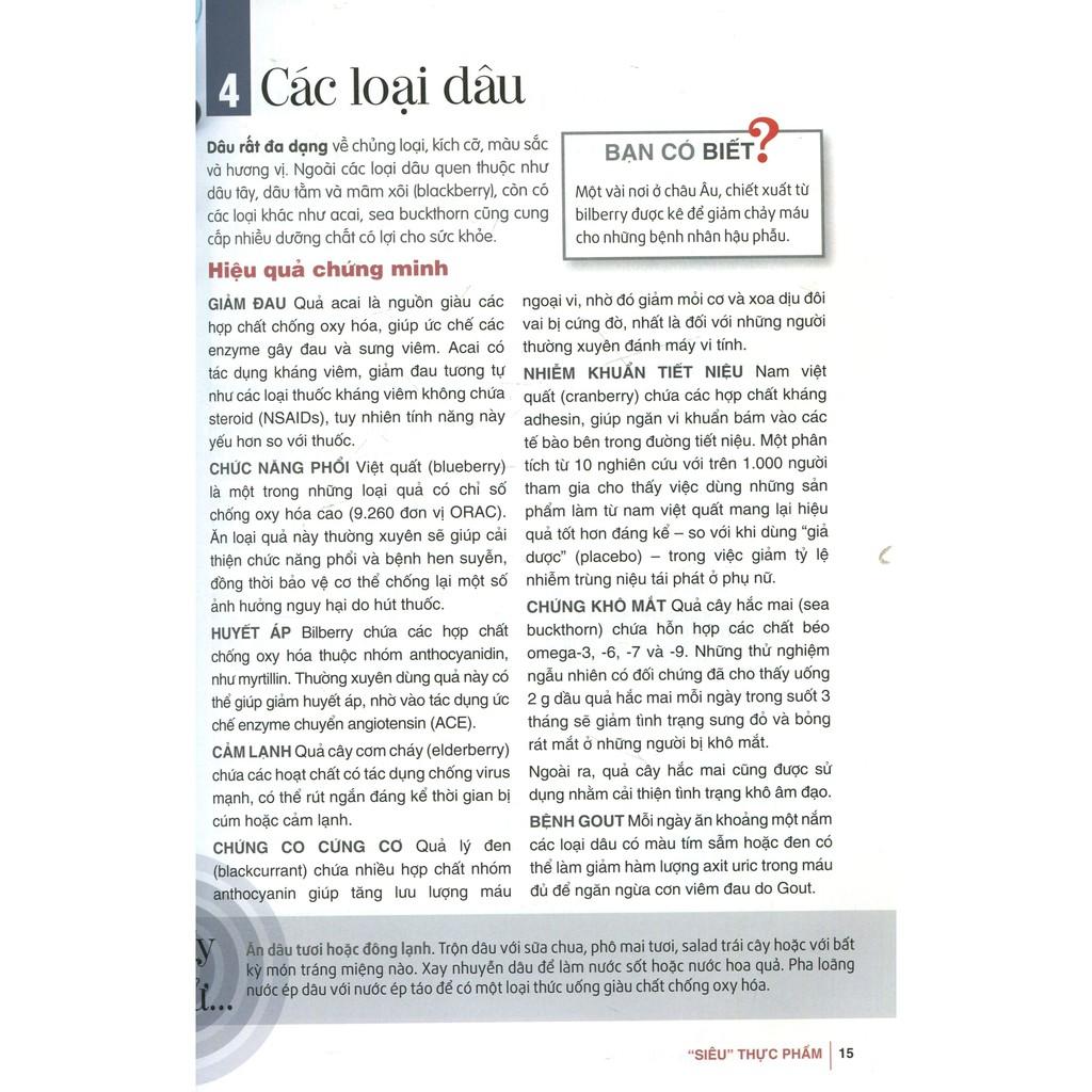 Công ty phát hành: First News - Trí Việt Tác Giả: Dr Sarah Brewer Ngày phát hành: 2020 Số trang: 176 Kích thước: 19 x 26 cm Nhà xuất bản: NXB Phụ Nữ Giá bìa: 160.000VND Loại Bìa: Bìa mềm Mô tả sản phẩm: ĂN LÀNH SỐNG MẠNH - SỨC KHỎE VỮNG BỀN Theo Hippocrates, cha đẻ của nền y học phương Tây, chế độ ăn uống lành mạnh là nền tảng cơ bản để có được sức khỏe tốt và còn hơn thế nữa, bệnh tật cũng có thể chữa trị bằng cách ăn uống đúng. Từ 2500 năm trước, Hippocrates đã nhận ra dinh dưỡng là “phòng tuyến” đầu tiên giúp con người tránh được bệnh tật. Với chế độ ăn uống hợp lý, “một quả táo mỗi ngày cũng có thể giúp tránh xa bác sĩ”; nhưng nếu chế độ ăn uống không phù hợp, “1/4 những gì bạn ăn vào sẽ giúp cho bạn sống, 3/4 còn lại sẽ nuôi sống bác sĩ” – theo dòng chữ tượng hình trong lăng mộ cổ ở Ai Cập. Thực phẩm là nguồn cung cấp những dưỡng chất thiết yếu giúp cơ thể tăng trưởng, tái tạo và phát triển hoàn thiện. Khi những dưỡng chất này được cung cấp đầy đủ, các tế bào có thể hoạt động hiệu quả. Còn khi những dưỡng chất quan trọng bị thiếu, quá trình trao đổi chất sẽ bị ảnh hưởng, tế bào không thể hoạt động tốt và những dấu hiệu cảnh báo sớm (như lão hóa, sức khỏe suy yếu) có thể xảy ra. Mặc dù thiếu hụt dưỡng chất nghiêm trọng hiếm khi xảy ra trong cuộc sống hiện nay, nhưng hấp thu ít những vitamin và khoáng chất thiết yếu có thể tăng nguy cơ mắc phải những căn bệnh như tim mạch, loãng xương và một số bệnh ung thư. Thuật ngữ “siêu thực phẩm” ngày càng được sử dụng rộng rãi, dù có phần cường điệu nhưng không thể phủ nhận những đặc tính vượt trội của chúng. Phần 1 của sách sẽ giới thiệu tổng quan về những loại thực phẩm này, cùng với những nghiên cứu khoa học mới nhất lý giải vì sao chúng được xem là “siêu thực phẩm”. Những hợp chất “thần diệu” này có thể tăng thêm “sức chiến đấu” cho cơ thể, giúp đẩy lùi bệnh tật. Phần 2 sẽ đề cập đến 50 bệnh phổ biến – từ hen suyễn, đau nửa đầu đến tim mạch, viêm thấp khớp – đồng thời nêu rõ loại thực phẩm nào có lợi cho sức khỏe và thực phẩm nào cần tránh. Bên cạnh đó, một số món ăn dinh dưỡng và không kém phần ngon miệng cũng được giới thiệu; có cả những mẹo hay về dinh dưỡng, những lời khuyên hữu ích khi sử dụng các chế phẩm bổ sung. Biết lựa chọn thực phẩm và các chế phẩm bổ sung một cách khôn ngoan, bạn sẽ nâng cao khả năng phòng chống, cải thiện tình trạng sức khỏe và thậm chí có thể chữa trị nhiều căn bệnh phổ biến hiện nay. Với những lời khuyên trong sách này, bạn sẽ có được sức khỏe tốt, sống khỏe mạnh và hạnh phúc hơn.