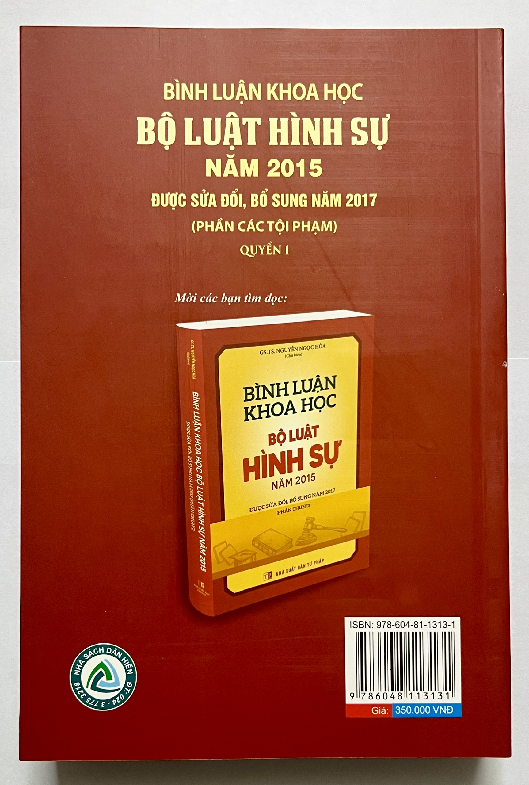Sách Bình Luận Khoa Học Bộ Luật Hình Sự Năm 2015 Được Sửa Đổi, Bổ Sung Năm 2017 (Phần Các Tội Phạm) - Quyển 1 Tác giả: GS.TS. Nguyễn Ngọc Hòa Nhà xuất bản: Nhà