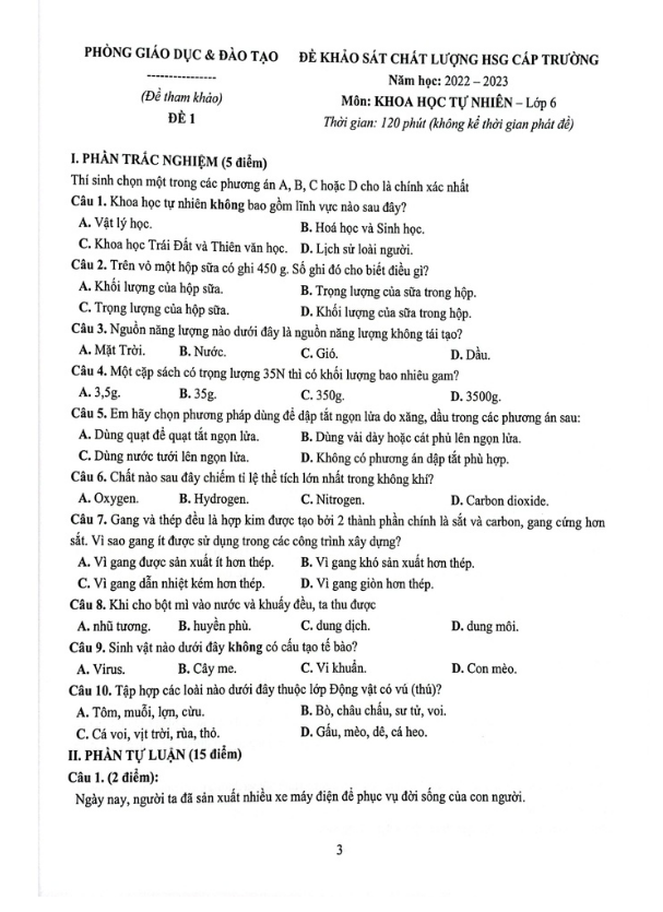 Mua tại TiktokBộ 30 Đề Thi Thử Học Sinh Giỏi Khoa Học Tự Nhiên 6 (Theo Chương Trình Giáo Dục Phổ Thông Mới) Năm học 2022-2023 là năm học đầu tiên áp dụng giảng dạy môn Khoa học tự nhiên 6 theo chương trình giáo dục phổ thông 2018. Đây là môn học tích hợp các lĩnh vực khoa học tự nhiên ở cấp THCS nhằm giúp các em phát triển năng lực khoa học tự nhiên một cách tối đa phục vụ trong cuộc sống. Đây là một môn học giải quyết các vấn đề của khoa học tự nhiên, một lĩnh vực có nhiều quy luật, nguyên lí, chứa đựng lượng kiến thức "khổng lồ". Điều này chắc chắn sẽ giúp ích cho các em trên con đường chinh phục tri thức nhân loại.