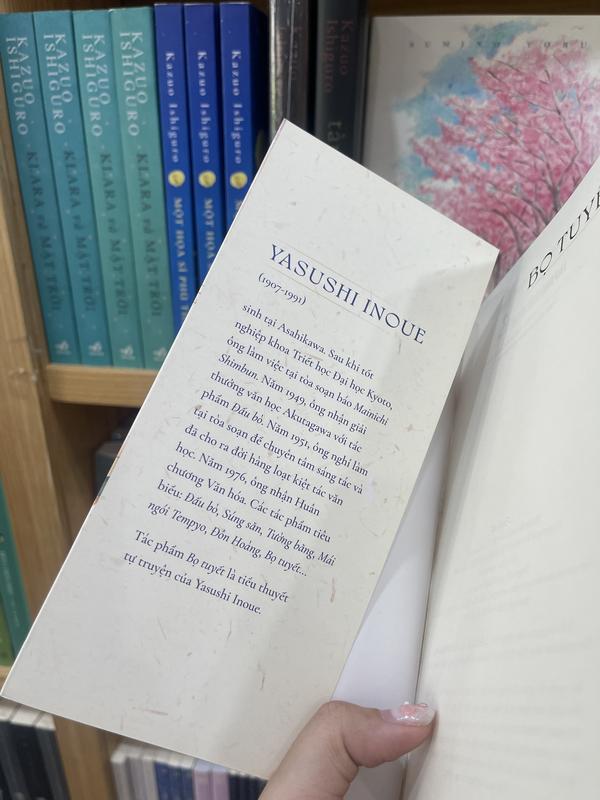 YASUSHI INOUE (1907-1991) sinh tại Asahikawa. Sau khi tốt nghiệp khoa Triết học Đại học Kyoto, ông làm việc tại tòa soạn báo Mainichi Shimbun. Năm 1949, ông nhận giải thưởng văn học Akutagawa với tác phẩm Đấu bò. Năm 1951, ông nghỉ làm tại tòa soạn để chuyên tâm sáng tác và đã cho ra đời hàng loạt kiệt tác văn học. Năm 1976, ông nhận Huân chương Văn hóa. Các tác phẩm tiêu biểu: Đấu bò, Súng săn, Tường băng, Mái ngói Tempyo, Đôn Hoàng, Bọ tuyết...
