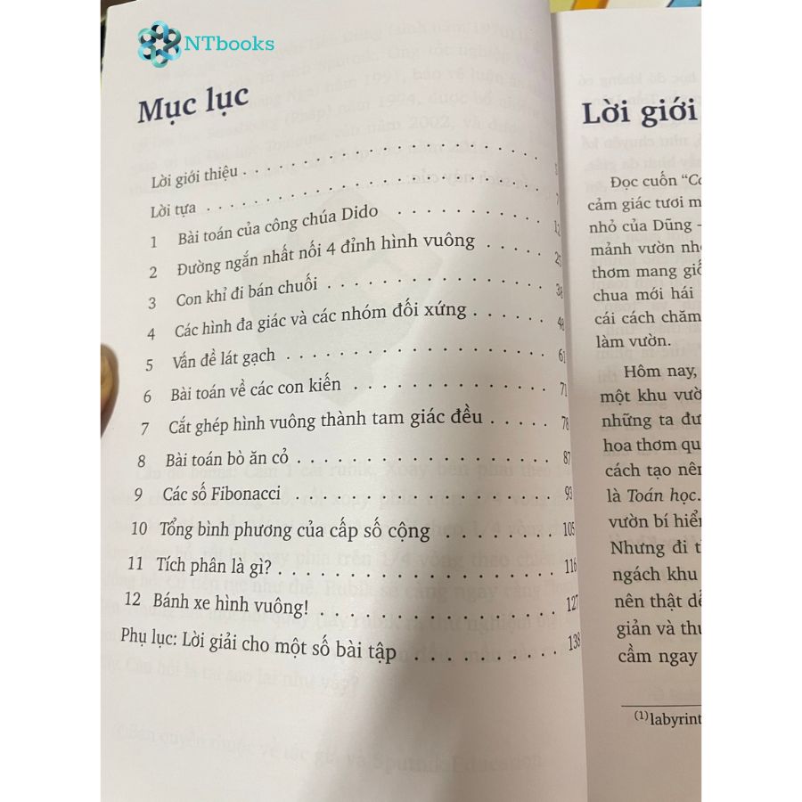 Hôm nay, ông chủ của khu vưòn đó lại dẫn chúng ta vào một khu vườn khác, cũng với niềm say mê như thế. Không những ta được ông chủ chỉ cho xem, được chiêu đãi những hoa thơm quả ngọt của khu vườn, mà còn được tận tình chỉ bảo cách tạo nên những hoa thơm quả ngọt đó. Khu vườn có tên là Toán học. Không ít người từng ngại ngần khi bước vào khu vưòn bí hiểm đó, với những lối đi chẳng khác nào labyrinth^. Nhưng đi theo người làm vườn thành thạo đã hiểu mọi ngõ ngách khu vườn như lòng bàn tay, ta bỗng thấy mọi điều trỏ nên thật dễ dàng. Tất cả đều hiện lên với một vẻ đẹp thật đơn giản và thuần khiết. Hơn thế nữa, ta bỗng thấy háo hức muốn cầm ngay xẻng, cuốc để tự mình trồng vài cái cây, vài khóm hoa, luống rau. Đối với tôi, khu vườn toán học đó không có gì xa lạ. Vậy mà đi theo ngưòi làm vườn Nguyễn Tiến Dũng, tôi vẫn ngạc nhiên thú vị về cái cách anh giảng giải chuyện làm thế nào để trồng được mấy khóm cây đó, như chuyện kể về lý thuyết nhóm thông qua việc xoay xoay mấy hình đa giác, hay bài toán tìm hình có chu vi cho trước với diện tích cực đại bằng cái dây da trâu của công chúa Dido.