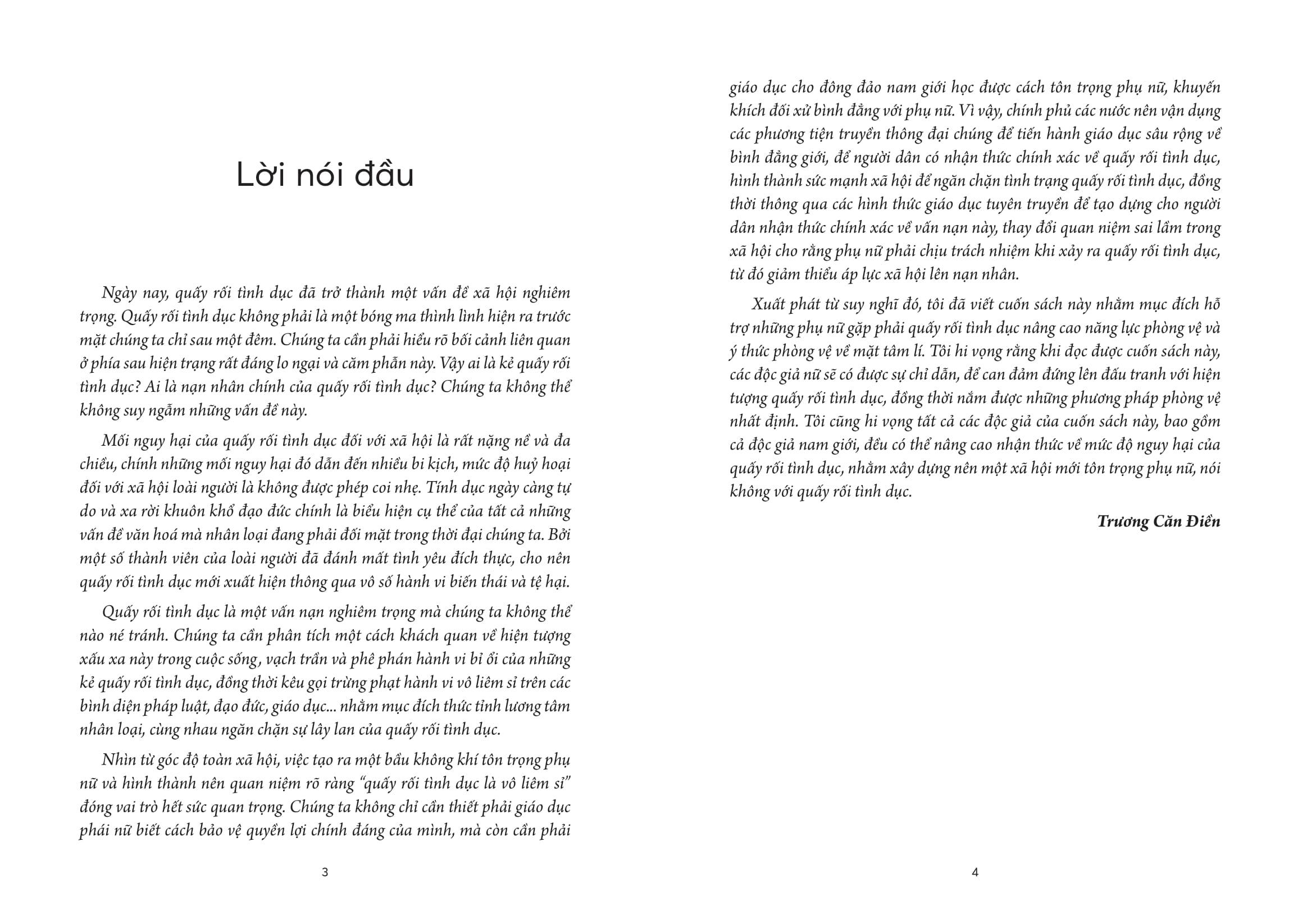 Không chỉ dành cho phụ nữ, cuốn sách còn hướng tới trẻ em, nam giới, và bất kì ai muốn xây dựng một xã hội tôn trọng – bình đẳng – văn minh, nơi quấy rối tình dục không còn là vùng tối.