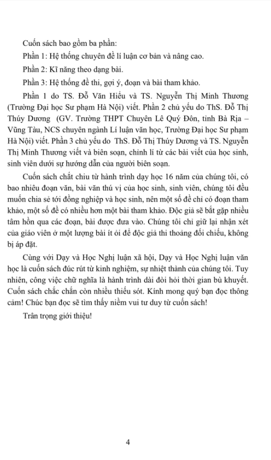 - Kĩ năng diễn đạt 4.1. Diễn đạt đúng 4.2. Diễn đạt hay PHẦN 2: CHUYÊN ĐỀ CƠ BẢN VÀ NÂNG CAO 2.1. Chuyên đề cơ bản 2.1.1. Tác phẩm trữ tình 2.1.2. Tác phẩm tự sự 2.1.3. Kí văn học 2.1.4. Văn học kịch 2.2. Chuyên đề nâng cao 2.2.1. Thơ trữ tình Việt Nam: loại hình và phát triển 2.2.2. Luân lí đạo đức trong văn học: truyền thống và hiện đại 2.2.3. Nữ quyền sinh thái: phản tư về những vấn đề xã hội 2.2.4. Tiếp nhận văn học: kiến tạo những giá trị 2.2.5. Văn học so sánh: cái nhìn đa chiều về văn học PHẦN 3: HỆ THỐNG ĐỀ THI, GỢI Ý, ĐOẠN VÀ BÀI THAM KHẢO