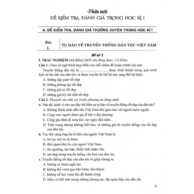 MÔ TẢ SẢN PHẨM Chương trình môn Giáo dục công dân lớp 8 có nhiều nội dung, kiến thức mới, với mong muốn giúp các em có thêm tài liệu tham khảo, rèn luyện kĩ năng tự kiểm tra, đánh giá tốt, chúng tôi biên soạn cuốn Đề kiểm tra, đánh giá Giáo dục công dân 8. Cuốn sách được biên soạn dưới dạng hệ thống các đề kiểm tra, đánh giá thường xuyên, đánh giá giữa kì và đánh giá cuối kì với những câu hỏi tự luận và trắc nghiệm phù hợp với nội dung theo Chương trình giáo dục phổ thông 2018 (bám sát sách giáo khoa Kết nối tri thức với cuộc sống), có mở rộng và nâng cao . Mỗi đề kiểm tra, đánh giá được thiết kế theo mức độ từ dễ đến khó, nhằm giúp các em nắm vững kiến thức, biết vận dụng những kiến thức đã học vào giải quyết những tình huống trong cuộc sống, đồng thời có thể vận dụng hiệu quả trong các kì kiểm tra, đánh giá. Ngoài ra, ở cuối sách có phần đáp án và gợi ý làm bài giúp các em có thể tham khảo, nhanh chóng nhằm tiếp thu, lĩnh hội và hệ thống hoá kiến thức đã học . Cấu trúc sách gồm hai phần chính: – Phần một. Đề kiểm tra, đánh giá trong học kì I A. Đề kiểm tra, đánh giá thường xuyên trong học kì I B. Đề kiểm tra, đánh giá giữa học kì I C. Đề kiểm tra, đánh giá cuối học kì I – Phần hai. Đề kiểm tra, đánh giá trong học kì I A. Đề kiểm tra, đánh giá thường xuyên trong học kì II B. Đề kiểm tra, đánh giá giữa học kì II C. Đề kiểm tra, đánh giá cuối học kì II