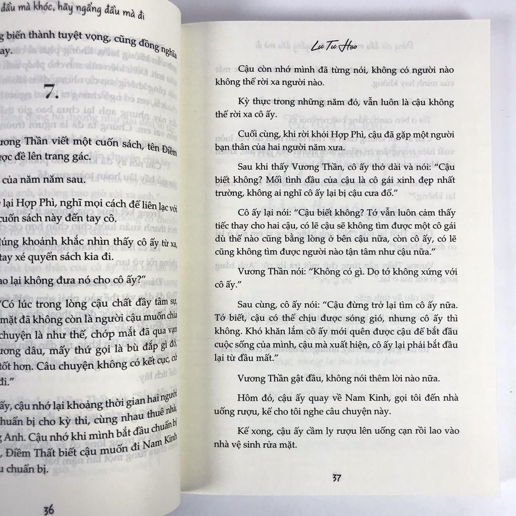 Vẫn là chàng trai Lư Tư Hạo cùng giọng văn nhẹ nhàng nhưng sâu lắng đã chinh phục hàng triệu trái tim trong những tác phẩm trước, “Đừng cúi đầu mà khóc, hãy ngẩng đầu mà đi” dù chẳng thể khiến con đường bạn đang đi bớt gập ghềnh hơn, nhưng sẽ là cuốn sách tuyệt nhất để dẫn đường cho tuổi trẻ của bạn và tôi, những tuổi trẻ đang chênh vênh lạc lối chẳng biết đi về đâu.