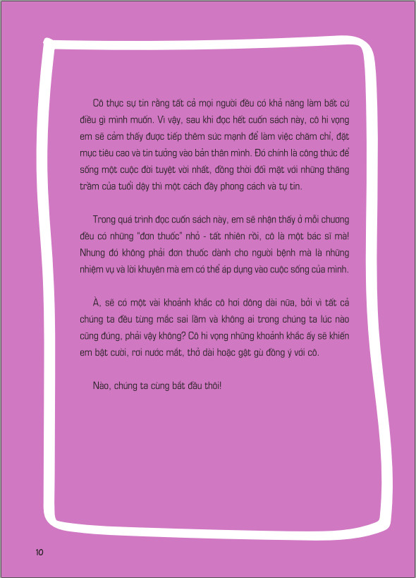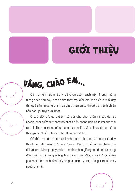 Cảm ơn em rất nhiều vì đã chọn cuốn sách này. Trong những trang sách sau đây, em sẽ tìm thấy mọi điều em cần biết về tuổi dậy thì, quá trình trưởng thành và phát triển sự tự tin để trở thành phiên bản con gái tuyệt vời nhất.