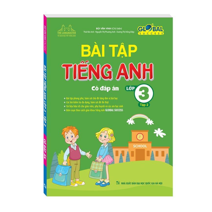 Để giúp học sinh lớp 3 sử dụng hiệu quả từ vừng và ngữ pháp trong các chương trình học trên lớp, cuốn Sách bài tập Tiếng Anh 3 Global Succes được tăng cường củng cố các từ vựng, cấu trúc ngữ pháp đã học, nhằm hướng tới mở rộng vốn từ vựng của học sinh thông qua các dạng bài tập khác nhau.