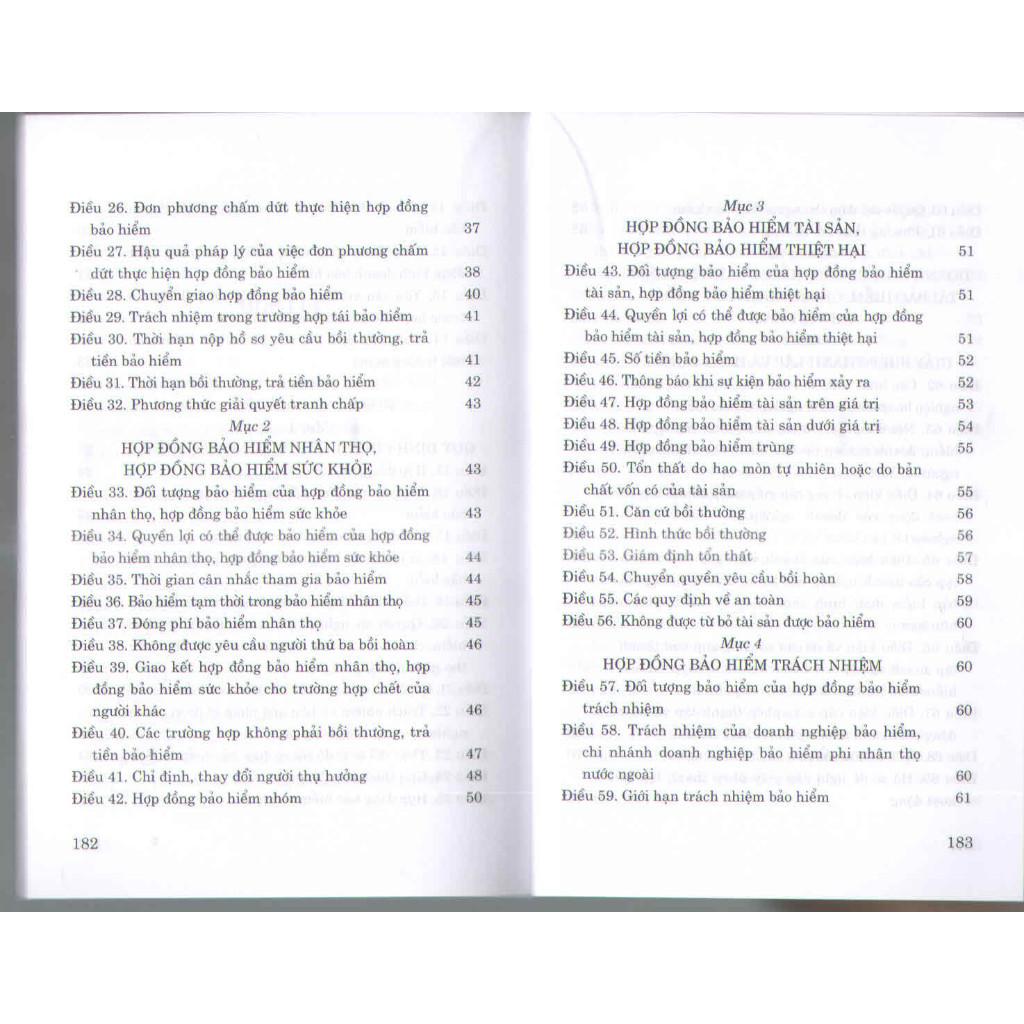 Mua tại TiktokSách - Luật Kinh Doanh Bảo Hiểm Tác giả: Quốc Hội Nhà xuất bản: Chính Trị Quốc Gia Sự Thật Khổ sách: 13x19cm Phát hành: 2022 Công ty phát hành: Nhà sách Tư Pháp Giá bìa: 52.000 đ Số trang: 192 trang Hình thức bìa: Bìa mềm Luật Kinh Doanh Bảo Hiểm số 08/2022/QH15 đã được Quốc Hội thông qua ngày 16 tháng 6 năm 2022 ( Luật này có hiệu lực từ ngày 01 -01 -2023)
