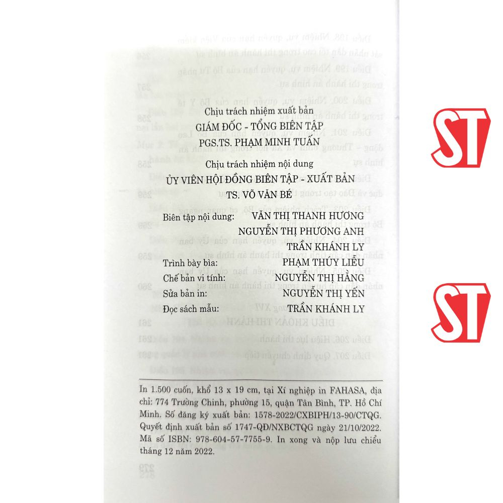 Sách - Luật Thi Hành Án Hình Sự Hiện HànhTác giả: Quốc HộiNhà xuất bản: Chính Trị Quốc Gia Sự ThậtKhổ sách: 14.5*20.5cmPhát hành: 2022Công ty phát hành: Nhà sách Tư PhápGiá bìa: 81.000 đSố tra...