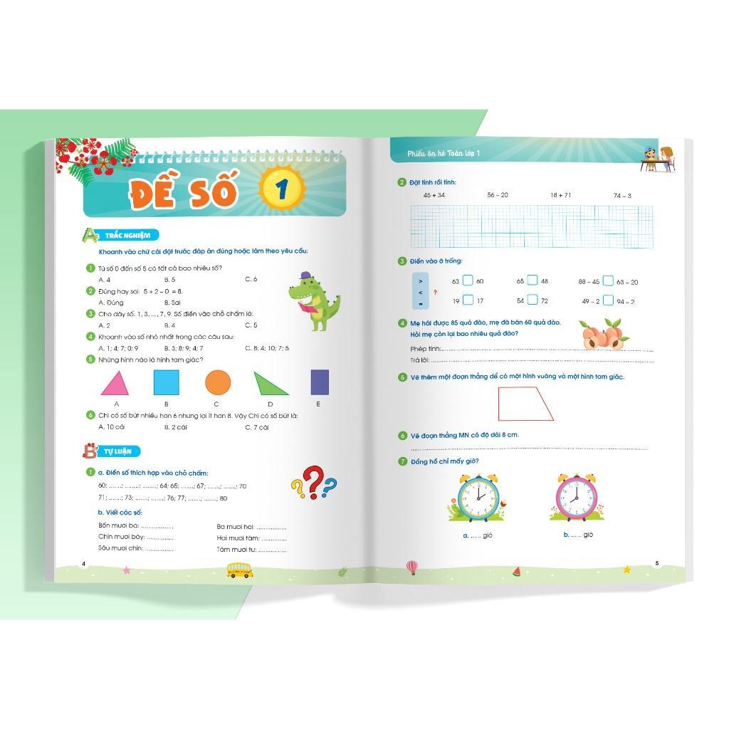 - Bám sát chương trình giảng dạy: Combo Phiếu ôn hè Toán và Tiếng Việt lớp 1 được biên soạn dựa trên chương trình của Bộ Giáo dục và Đào tạo (GD&ĐT). Điều này đảm bảo rằng các em học sinh có thể ôn tập và củng cố kiến thức một cách hiệu quả, chuẩn bị tốt nhất cho năm học mới.