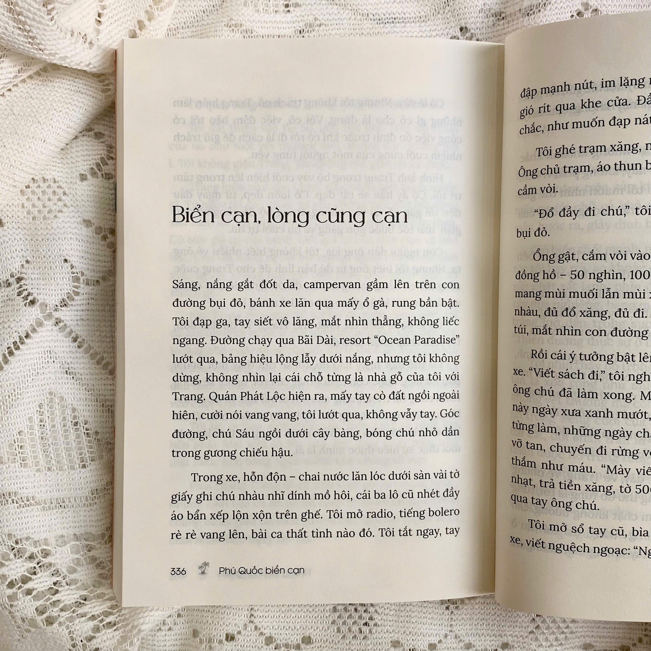 Cuốn sách như một làn gió biển lùa qua lồng ngực rỗng tênh. Ở đó, có những ngày nằm võng trên bãi biển hoang vu, ăn bữa mì gói mà thấy đời đáng sống. Có những đêm thức trắng, đối diện với chính m.ình trong một chiếc xe chật hẹp nhưng đủ đầy tự do.