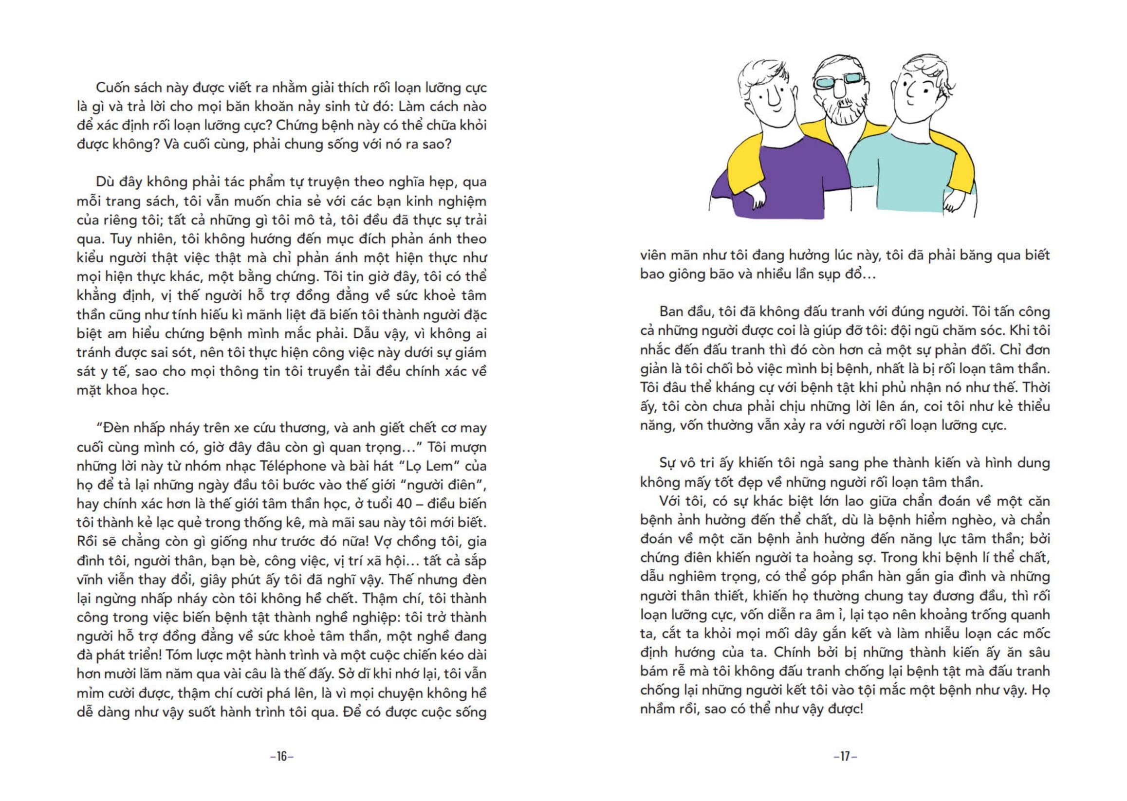 Rối Loạn Lưỡng Cực - Hành Trình Dài Chung Sống là cuốn sách sống động với nhiều hình ảnh minh hoạ giúp chúng ta hiểu rõ hơn về chứng rối loạn lưỡng cực và phần