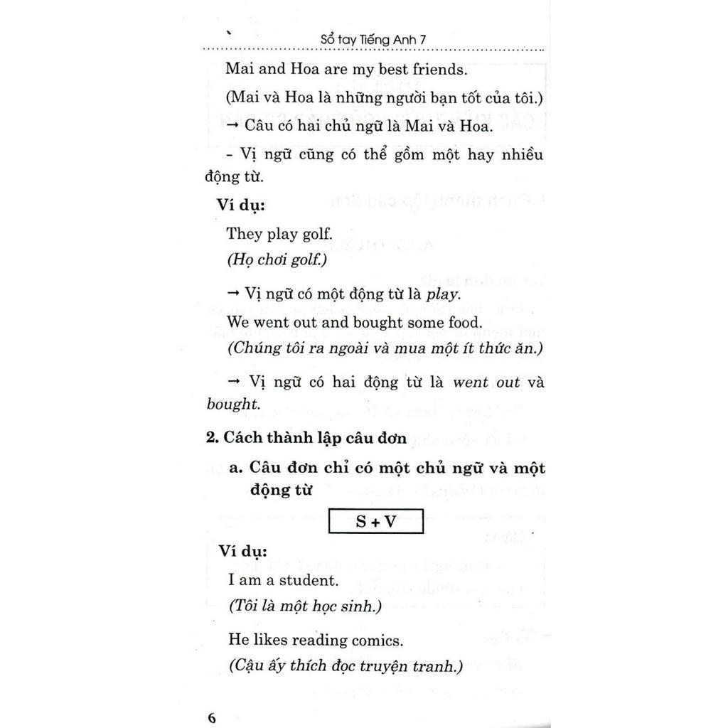 “Sổ tay Tiếng Anh 7” là cuốn sách bỏ túi dành cho các em học sinh lớp 7 tham khảo, học tập và rèn luyện kiến thức ngữ pháp tiếng Anh theo sách giáo khoa Tiếng Anh 7 - Kết nối tri thức với cuộc sống.