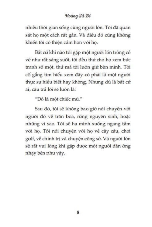 Được mệnh danh là “cuốn sách dành cho mọi độ tuổi”, Hoàng tử bé là một tác phẩm hiếm hoi có thể khiến người lớn dừng lại, suy ngẫm, và hồi tưởng về chính tuổi thơ của mình. Dưới hình hài một câu chuyện thiếu nhi là một bản ngụ ngôn thấm đẫm tình yêu, sự cô đơn, lòng bao dung và bài học về những điều “thiết yếu mà mắt thường không nhìn thấy được”.