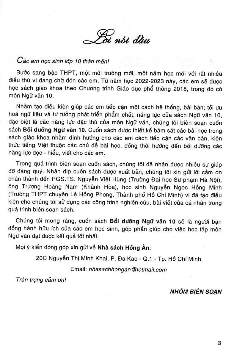 Nhằm tạo điều kiện giúp các em tiếp cận một cách hệ thống, bài bản; tối ưu hoá ngữ liệu và tư tưởng phát triển phẩm chất, năng lực của sách Ngữ văn 10, đặc biệt là các năng lực đặc thù của môn Ngữ văn, chúng tôi biên soạn cuốn sách Bồi Dưỡng Ngữ Văn 10 (Dùng Kèm SGK Chân Trời). Cuốn sách được thiết kế bám sát các bài học trong sách giáo khoa nhằm định hướng cho các em cách tiếp cận các văn bản, kiến thức tiếng Việt thuộc các chủ đề bài học, đồng thời hướng đến bồi dưỡng các năng lực đọc - hiểu, viết cho các em.