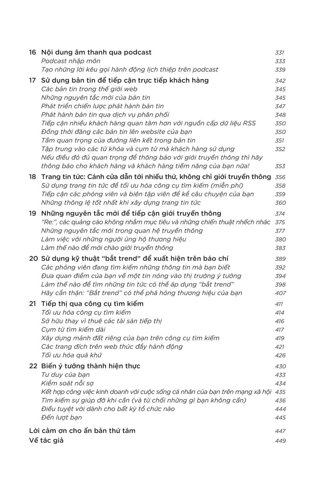 Là một tác phẩm bán chạy toàn cầu với hơn nửa triệu bản đã được tiêu thụ và dịch ra 29 thứ tiếng, cuốn sách này sẽ hướng dẫn bạn từng bước ứng dụng sức mạnh của công nghệ trong tiếp thị. Bạn sẽ học được những phương pháp mới nhất và hiệu quả nhất trong quan hệ công chúng, tiếp thị và giao tiếp với khách hàng – tất cả chỉ với chi phí thấp hơn nhiều so với quảng cáo truyền thống!