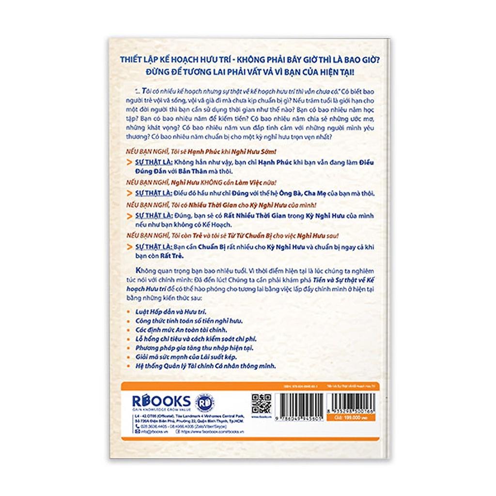- TIỀN VÀ SỰ THẬT VỀ KẾ HOẠCH HƯU TRÍ Thời gian không chừa lại một ai, Tháng năm tuổi trẻ có đâu dài. Emma Casey sẽ cùng bạn xây dựng một kế hoạch nghỉ hưu hoàn hảo bằng việc khai thác những vấn đề: • Luật Hấp dẫn và Hưu trí. • Công thức tính toán số tiền nghỉ hưu. • Các định mức An toàn tài chính. • Lỗ hổng chi tiêu và cách kiểm soát chi phí. • Phương pháp gia tăng thu nhập hiện tại. • Giải mã sức mạnh của Lãi suất kép và Bảng Ngân sách tiền mặt. Bên cạnh đó, nhiều giá trị nhân bản khác như cảm xúc, tình yêu, sự cho đi, đức hy sinh,… đều sẽ được Emma gửi trao đến bạn bằng ngôn từ đơn giản, chân thành và những phân tích chuyên môn đầy sâu sắc. Hãy để Emma giúp bạn tạo nên những ngày tháng nghỉ hưu vui vẻ ngay từ bây giờ. THIẾT LẬP KẾ HOẠCH HƯU TRÍ – KHÔNG PHẢI BÂY GIỜ THÌ BAO GIỜ? ĐỪNG ĐỂ TƯƠNG LAI PHẢI VẤT VẢ VÌ BẠN CỦA HIỆN TẠI. 2 SƠ LƯỢC VỀ TÁC GIẢ
