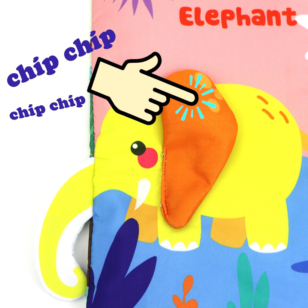 - Sách có âm thanh chút chít của bóp chít, xúc xắc của lục lạc và sột soạt của nylon.
