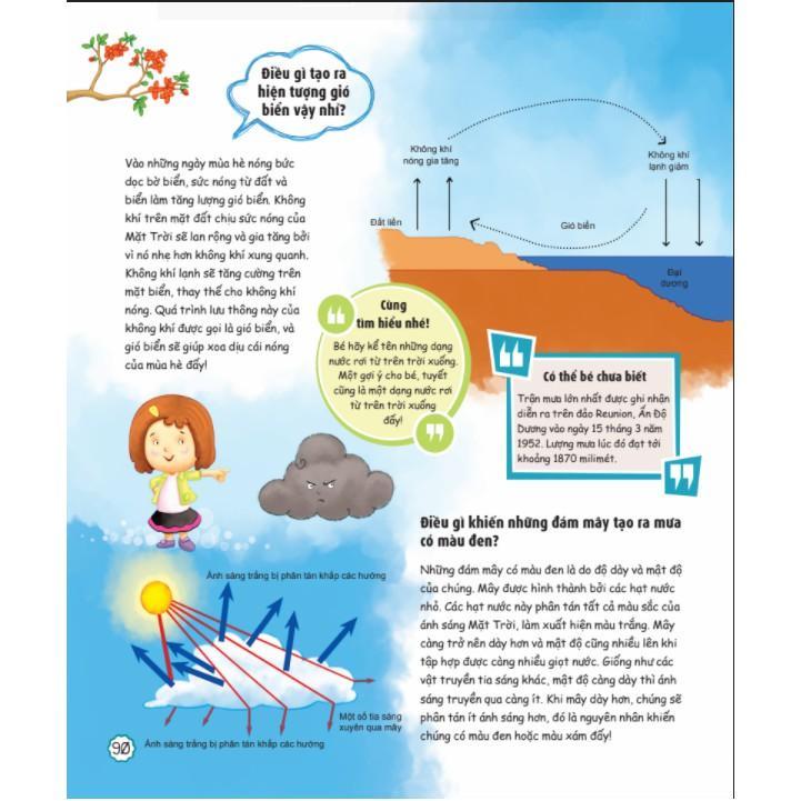- 6 chương của cuốn sách sẽ mở ra những điều thú vị và trả lười những thắc mắc của con về: Cơ thể người, hệ mặt trời, công nghệ, khoa học, động vật, tự nhiên.