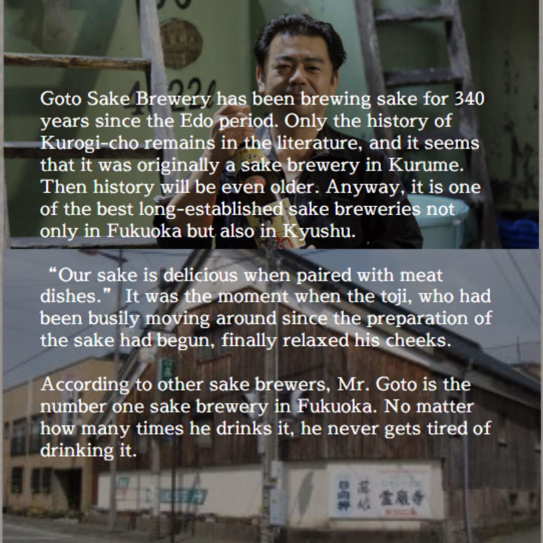 Nhà máy r'ượu sake lâu đời Goto được thành lập vào năm 1677, nằm ở Kurogi-cho, thành phố Yame, tỉnh Fukuoka.