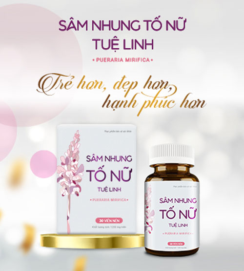SÂM NHUNG TỐ NỮ TUỆ LINH   Theo thời gian, dưới tác động của quá trình lão hóa cùng với những lo toan cuộc sống, những lần sinh nở đã khiến cơ thể phụ nữ “ tuột dốc không phanh” về mọi thứ: từ sức khỏe, sắc đẹp cho đến các vấn đề về tâm sinh lý. Tất cả ập đến như một cơn lốc xoáy cuốn trôi phăng đi những năm tháng tươi trẻ, hạnh phúc. Theo các chuyên gia, nguyên nhân sâu xa được xem là gốc rễ của sự “tuột dốc” trên là do sự suy giảm về sức khỏe và đặc biệt là nồng độ estrogen trong cơ thể. Do đó để khắc phục tình trạng này cũng như duy sức sống và vẻ đẹp tuổi xuân các chuyên gia khuyên sử dụng Sâm Nhung Tố Nữ Tuệ Linh để bổ sung nội tiết tố nữ estrogen một cách tự nhiên, bền vững.   CÔNG DỤNG ĐẶC BIỆT CỦA SÂM NHUNG TỐ NỮ TUỆ LINH Sâm nhung tố nữ Tuệ Linh có các thành phần Sâm tố nữ, nhung hươu và các nguyên liệu quý hỗ trợ tăng cường nội tiết tố nữ, hỗ trợ làm giảm các triệu chứng tiền mãn kinh, hỗ trợ giảm nếp nhăn trên da, tăng cường đàn hồi da, giúp da đẹp mịn màng.     Thành phần quan trọng của sản phẩm bao gồm: Sâm Tố Nữ “Bí thuật hồi xuân” được lưu truyền từ ngàn đời của dân tộc Thái – Tây Bắc. Củ của loài cây này được phụ nữ dân tộc Thái sử dụng để làm đẹp thường xuyên và giữ vóc dáng thon gọn. Đây được coi là bí quyết giúp phụ nữ dân tộc Thái có vẻ đẹp rực rỡ và làn da trắng ngần, hơn hẳn các dân tộc khác ở vùng Tây bắc Việt Nam. Đến nay hàng nghìn công trình khoa học đã khẳng định những công dụng vượt trội của Sâm tố nữ cho phái đẹp. Chứa 17 hoạt chất có tác dụng tương tự estrogen. Hoạt chất Miroestrol và Deoxymiroestrol trong Sâm tố nữ có hoạt lực mạnh gấp 10.000 lần phytoestrogen trong mầm Đậu nành.   Hồng Sâm Theo lịch sử y học cổ đại Trung Hoa, từ hơn 3.000 năm trước Công nguyên, nhân sâm đã được nói đến trong sách “Thần nông bản thảo” như là một “thần dược” bách bệnh, giúp kéo dài tuổi thọ của vua Thần Nông. Đây là dược liệu đầu vị của các bài thuốc bồi bổ cơ thể, tăng cường sức khỏe và đứng đầu trong tứ đại danh dược “Sâm – Nhung – Quế – Phụ”.