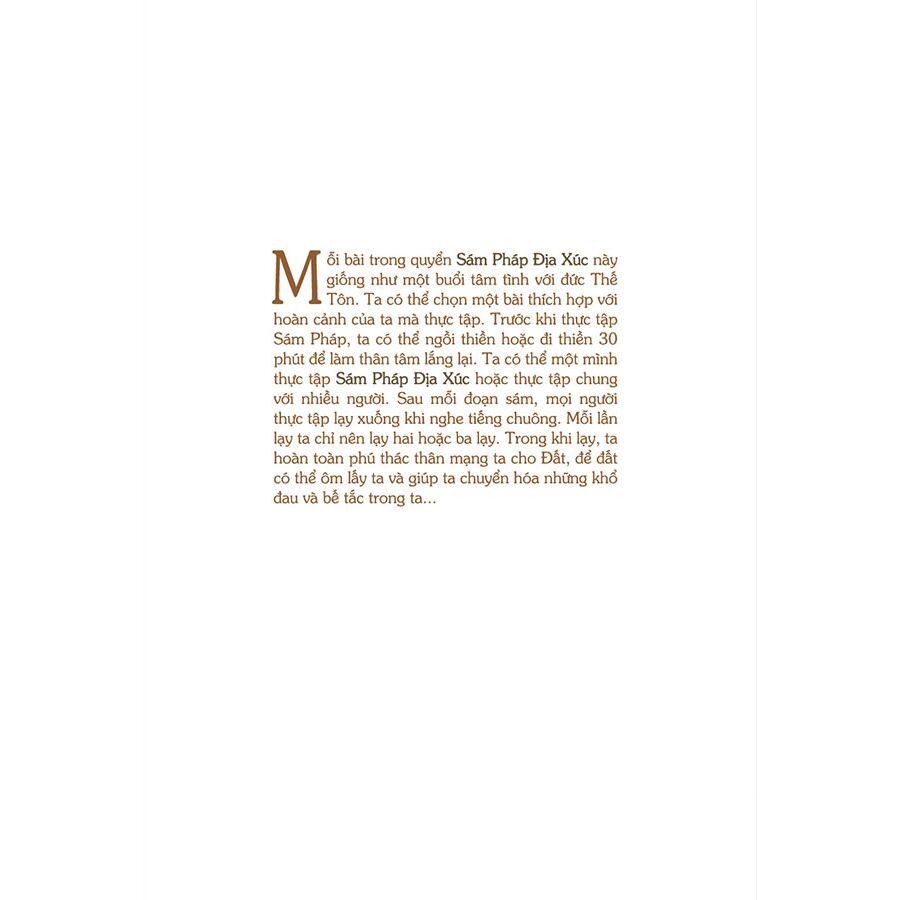 Mỗi bài trong quyển Sám Pháp Địa Xúc này giống như một buổi tâm tình với đức Thế Tôn. Ta có thể chọn một bài thích hợp với hoàn cảnh của ta mà thực tập. Trước khi thực tập Sám Pháp, ta có thể ngồi thiền hoặc đi thiền 30 phút để làm thân tâm lắng lại. Ta có thể một mình thực tập Sám Pháp Địa Xúc hoặc thực tập chung với nhiều người. Sau mỗi đoạn sám, mọi người thực tập lạy xuống khi nghe tiếng chuông. Mỗi lần lạy ta chỉ nên lạy hai hoặc ba lạy. Trong khi lạy, ta hoàn toàn phú thác thân mạng ta cho Đất, để đất có thể ôm lấy ta và giúp ta chuyển hóa những khổ đau và bế tắc trong