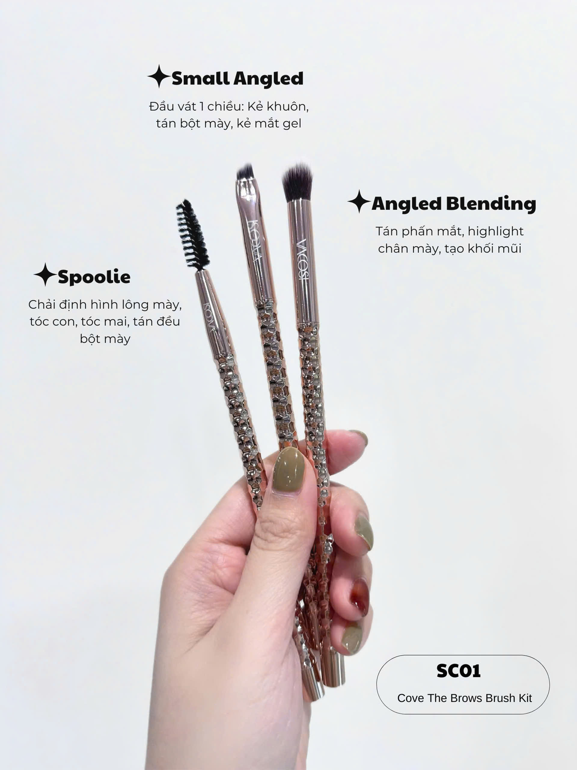 Bộ 3 cọ chuyên nghiệp dành makeup mắt, cọ viền mí ngắn, cọ tán smokey với đầu vát chóp cho hốc mắt sâu, và cọ bắt sáng đầu bung dẹt, mang lại vẻ đẹp mắt ấn tượng và sắc sảo.
