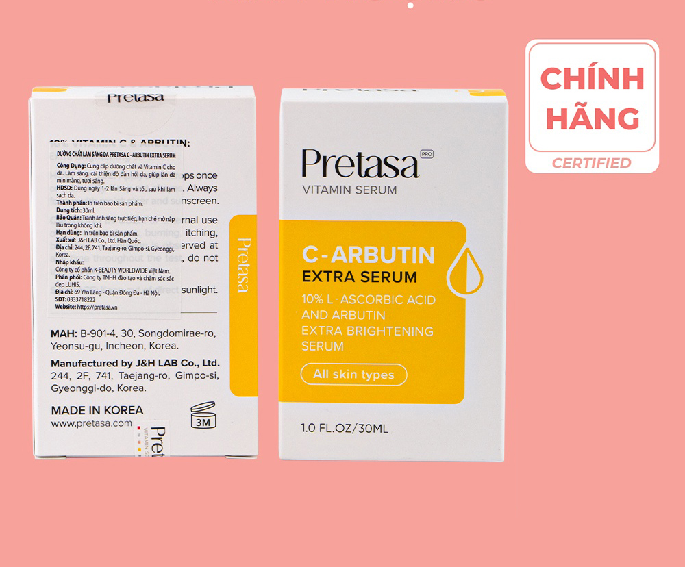 Mua tại TiktokỞ bất kì thời đại nào thì nhu cầu làm đẹp luôn được đặt lên hàng đầu, sự hiện diện của làn da trắng sáng giúp chị em luôn tươi trẻ và tự tin hơn trong cuộc sống. Nhưng do môi trường làm việc nhiều khói bụi và các sản phẩm chăm sóc da không hiệu quả nên làn da dễ bị sạm, xỉn màu và lão hóa sớm. Ngoài ra, hậu quả của các vết thâm sau mụn là những vết thâm xấu xí, khó có thể hết trong thời gian ngắn. Hơn nữa khi bước sang tuổi 25, làn da của bạn sẽ bắt đầu sạm đen và xuất hiện các nếp nhăn do quá trình lão hóa da. Vậy đâu là giải pháp cho tình trạng da này? Trong nhiều năm qua, Serum đã trở thành sản phẩm dưỡng da “thần thánh” được chị em tin dùng. Serum được “yêu thích” đến vậy không phải ngẫu nhiên mà do những lợi ích vượt trội trong việc chăm sóc và cung cấp dưỡng chất cho da. Hầu hết các chị em đều thừa nhận rằng sau một thời gian sử dụng serum, các vấn đề về da như mụn, nám, tàn nhang, thâm do mụn để lại… không những giảm mà da còn trở nên căng bóng, mịn màng. Pretasa C Arbutin Extra SerumHiện nay trên thị trường có hàng trăm loại serum. Giữa vô vàn sản phẩm với sự cạnh tranh khốc liệt, Pretasa Vitamin C Arbutin Brightening Serum vẫn được lòng nhiều người vì phù hợp với nhiều loại da, cải thiện rõ rệt làn da không đều màu. Công dụng tuyệt vời của Pretasa vitamin C Arbutin: