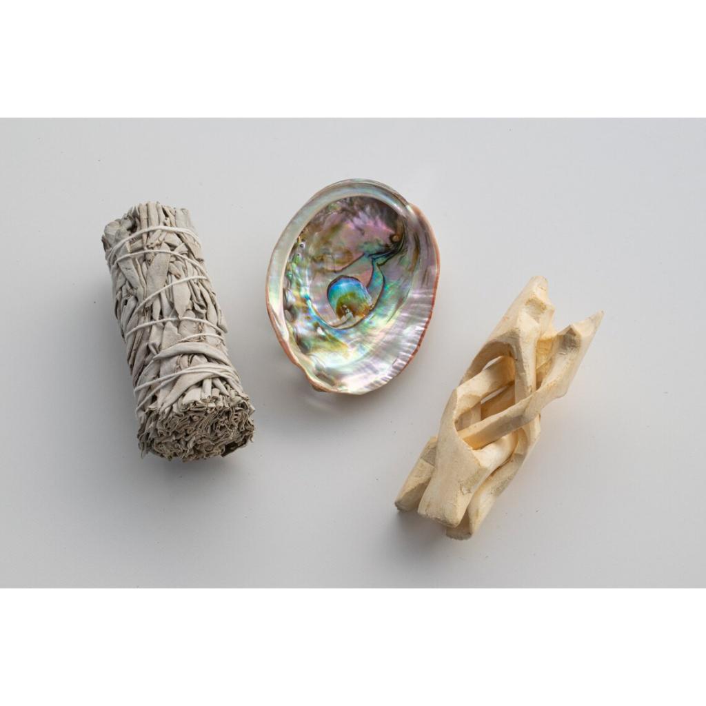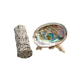 ✨Sét 3 món xô thơm trắng white sage + 1 vỏ ốc Ô4 8cm + 1 chân gỗ xoài