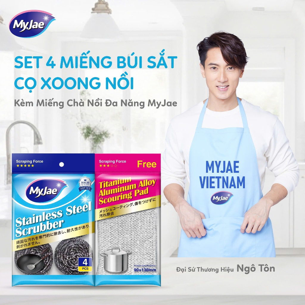 Set 4 Miếng Búi Sắt Cọ Xoong Nồi Kèm 1 Miếng Chà Nồi Đa Năng MyJae