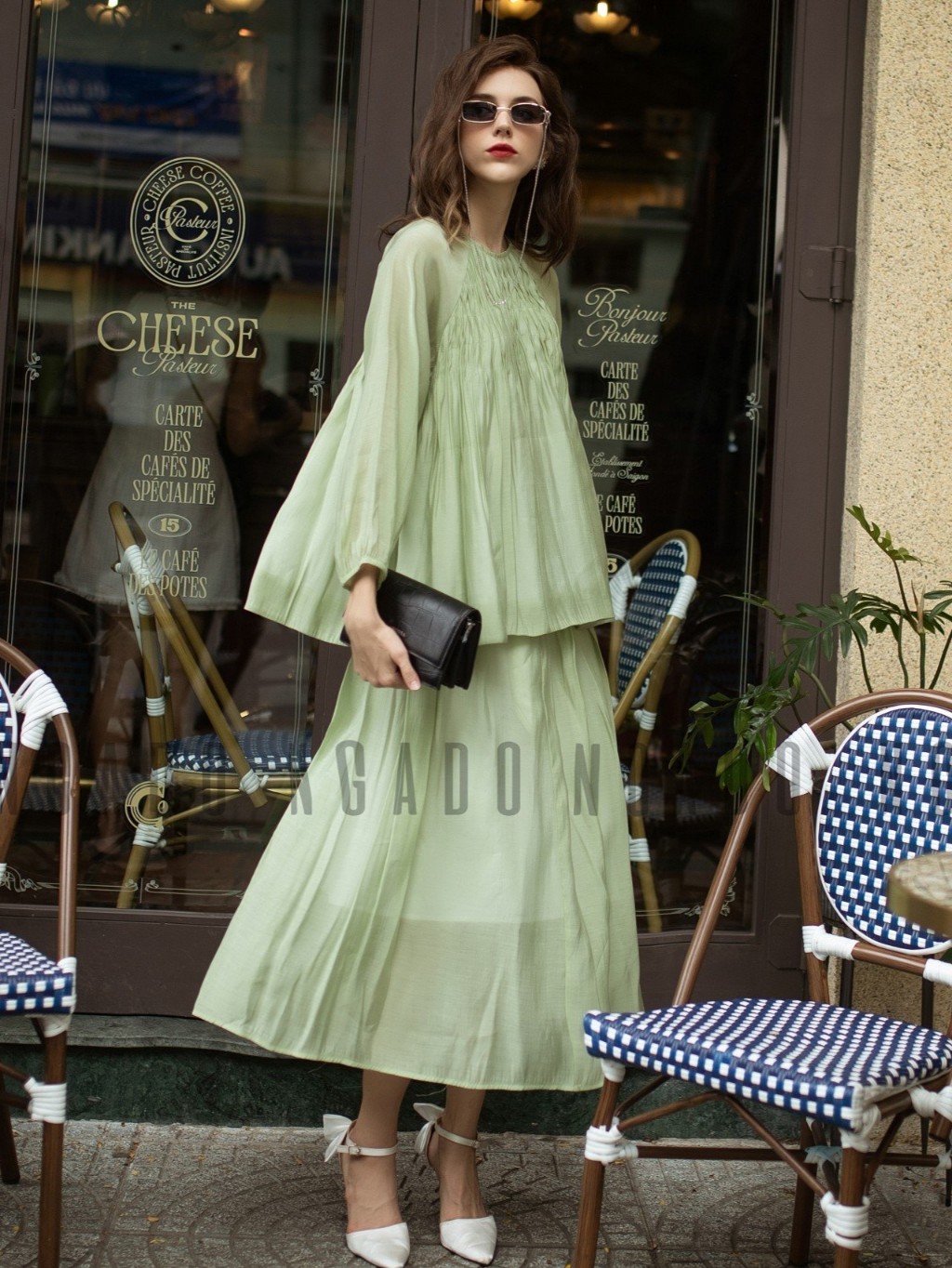 Set váy đầm gồm áo trung niên tay dài phối chân váy sang trọng, quý phái