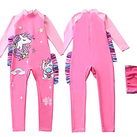 Đồ bơi bé gái liền thân dài full body chống nắng, chất vải mềm mại, họa tiết kỳ lân rất được các bé yêu thích. Chất liệu vải thun co dãn tốt, thoát nước nhanh