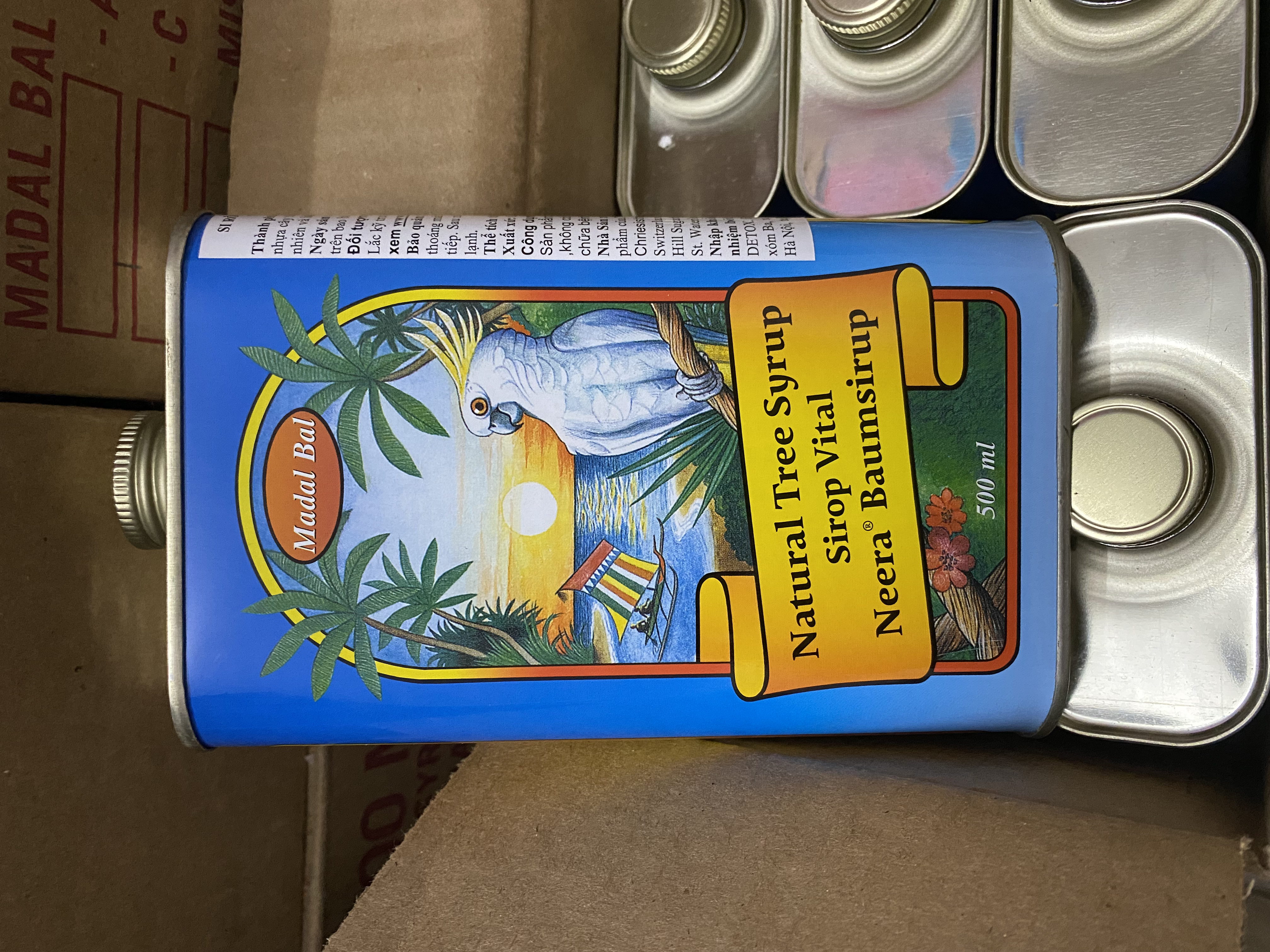 Mỗi lon tặng kèm cốc đong, bột ớt, bột gừng Là Siro của thương hiệu Madal Bal Neera với tên dòng sản phẩm là Natural Tree Syrup. Hạn sử dụng: Hàng mới Thể tích: 1000ml