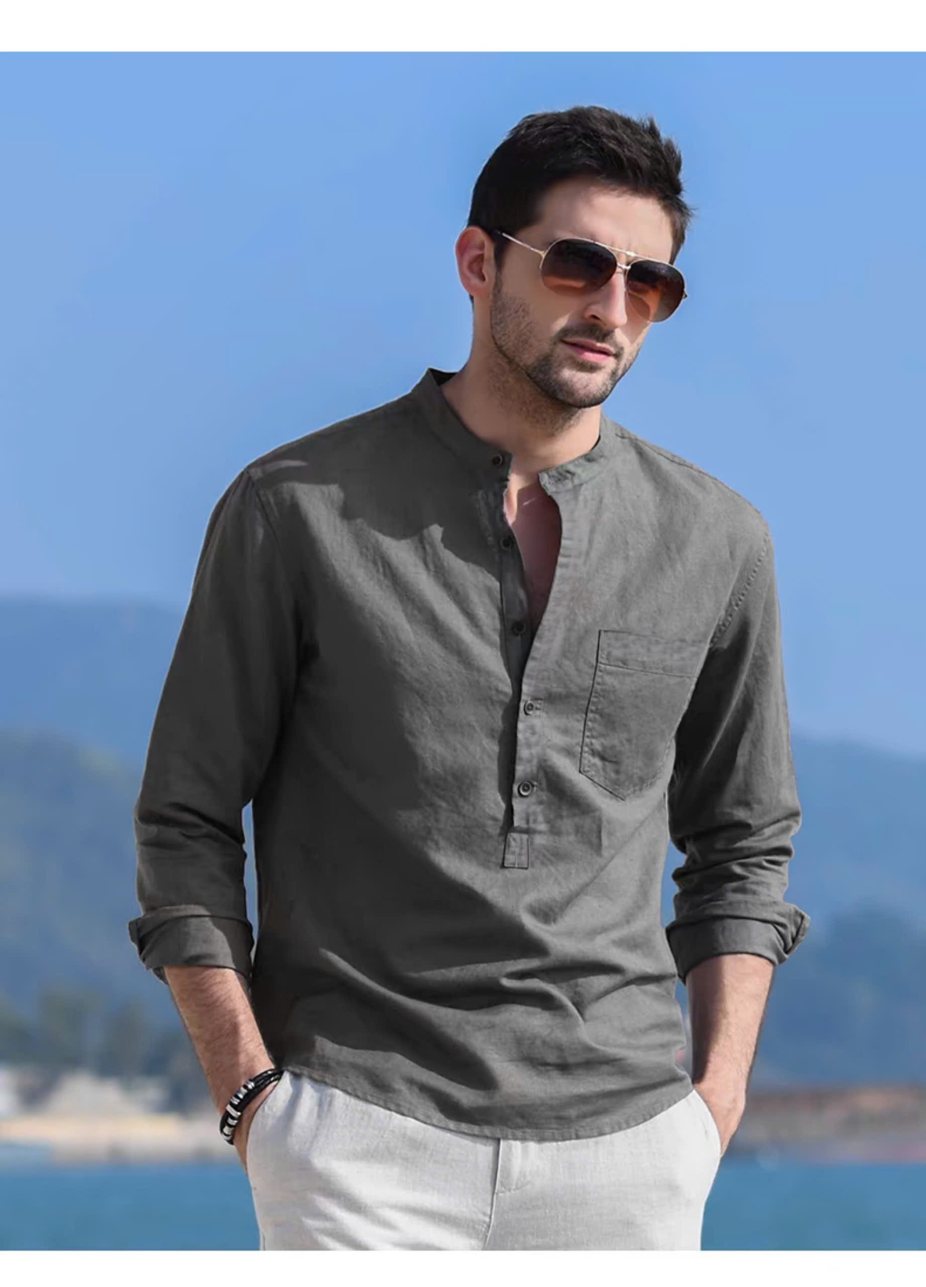 ✨ Sơ mi nam dáng đẹp basic trơn cổ điển, áo sơ mi cổ tàu công sở