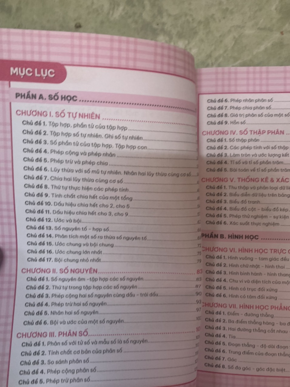 Cuốn sách gồm 2 phần Số học và Hình học với các chủ đề có nội dung bám sát sách giáo khoa mới của Bộ Giáo Dục và Đào tạo:
